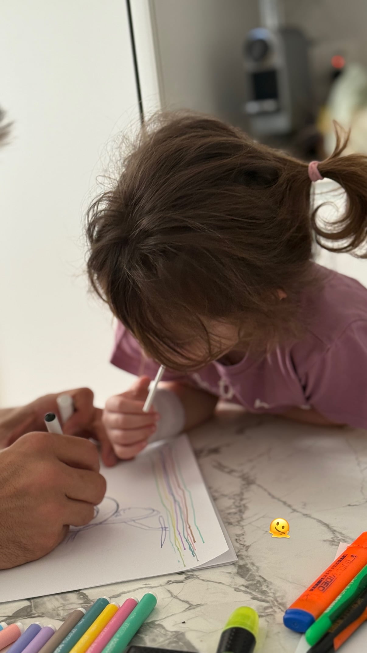 Σε ένα από τα στιγμιότυπα που ανήρτησε την Κυριακή 22 Φεβρουαρίου η Αθηνά Οικονομάκου, βλέπουμε τη μικρή Σιέννα να ζωγραφίζει μαζί με τον Μπρούνο Τσερέλα.