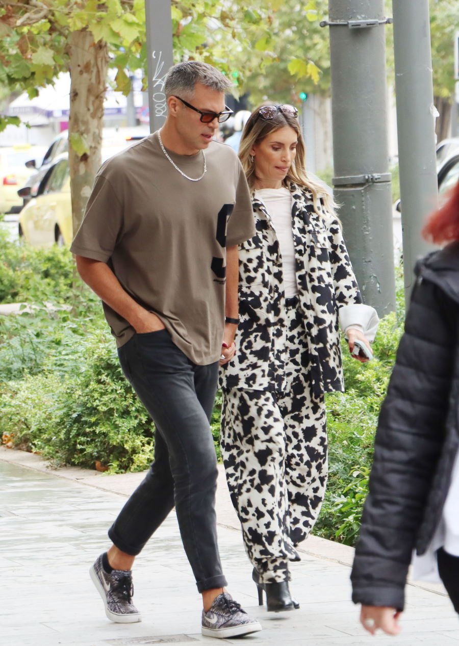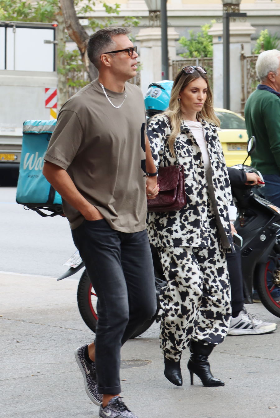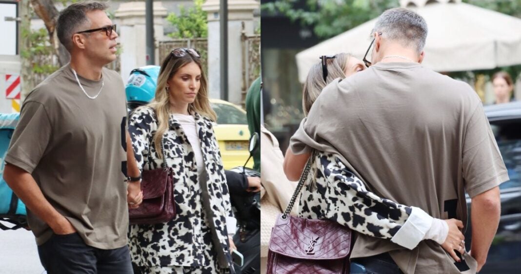 Ο φωτογραφικός φακός απαθανάτισε την Αθηνά Οικονομάκου και τον Μπρούνο Τσερέλα σε τρυφερές στιγμές στο κέντρο της Αθήνας.