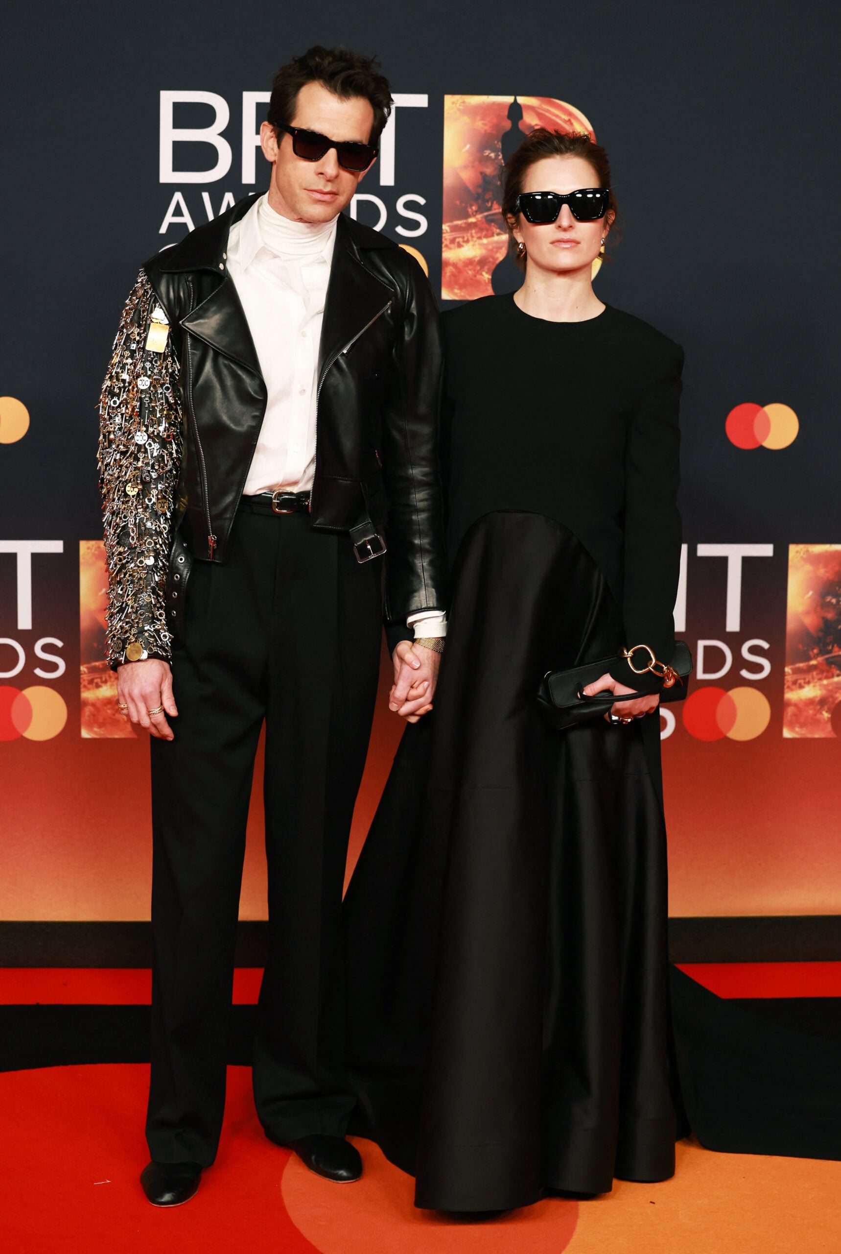 O Mark Ronson φτάνει στην τελετή με embellished jacket και δίπλα η σύζυγός του με blackn co ord.