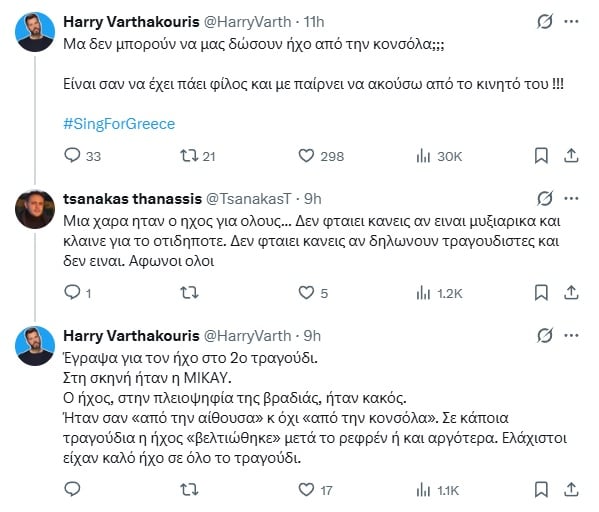 Ο Χάρης Βαρθακούρης ξέσπασε με αναρτήσεις του στο Twitter/X, παρακολουθώντας τον Β’ Ημιτελικό του Sing For Greece για την ανάδειξη του τραγουδιού που θα μας εκπροσωπήσει στην Eurovision 2026.