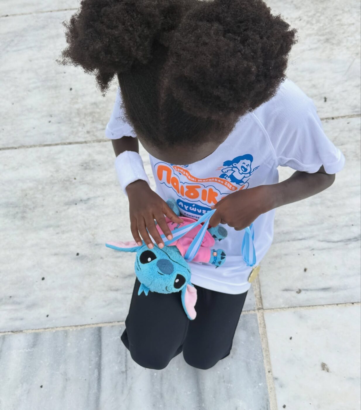 Όπως φαίνεται και στις φωτογραφίες, μητέρα και κόρη φόρεσαν τα αθλητικά τους, έτρεξαν μαζί με άλλους γονείς και παιδιά και στο τέλος φωτογραφήθηκαν χαμογελαστές, κρατώντας τα μετάλλιά τους.