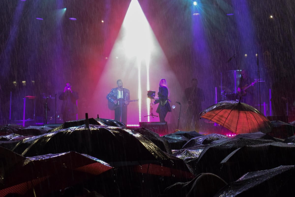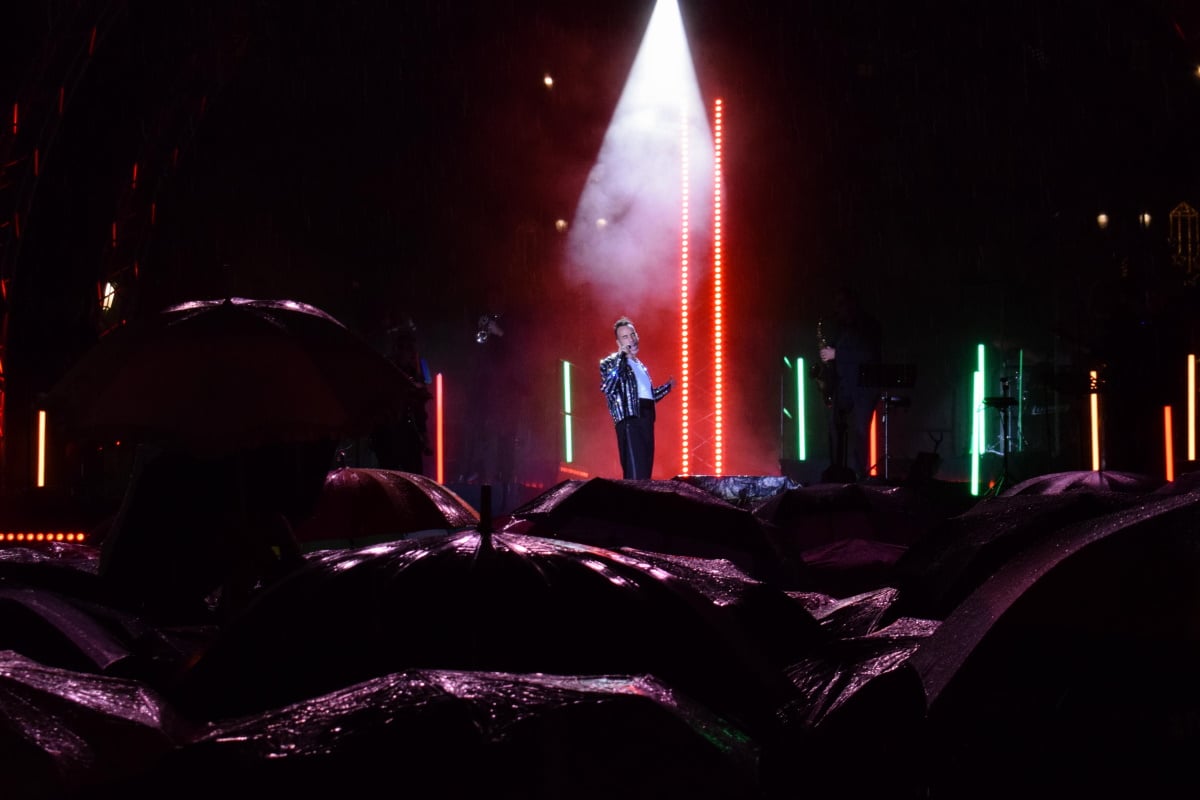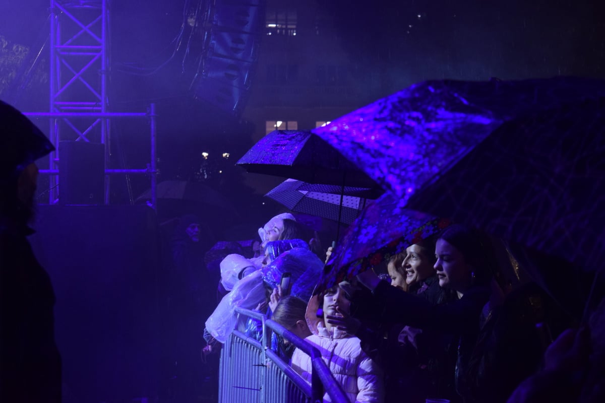 • Παρά τη βροχή, πολλοί κάτοικοι συγκεντρώθηκαν με ομπρέλες για να παρακολουθήσουν την έναρξη της εορταστικής περιόδου.