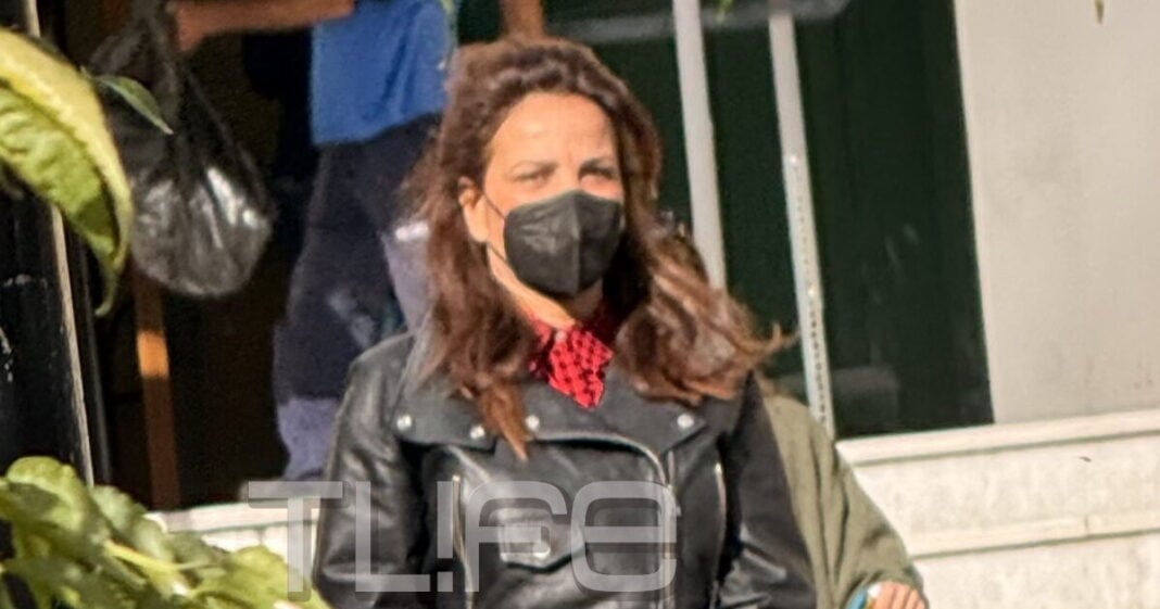 Η ηθοποιός Δήμητρα Ματσούκα εμφανίστηκε στα δικαστήρια της Ευελπίδων συνοδευόμενη από αστυνομικούς, φορώντας κόκκινο πουκάμισο, δερμάτινο jacket και μάσκα πρόληψης για τον κορονοϊό.