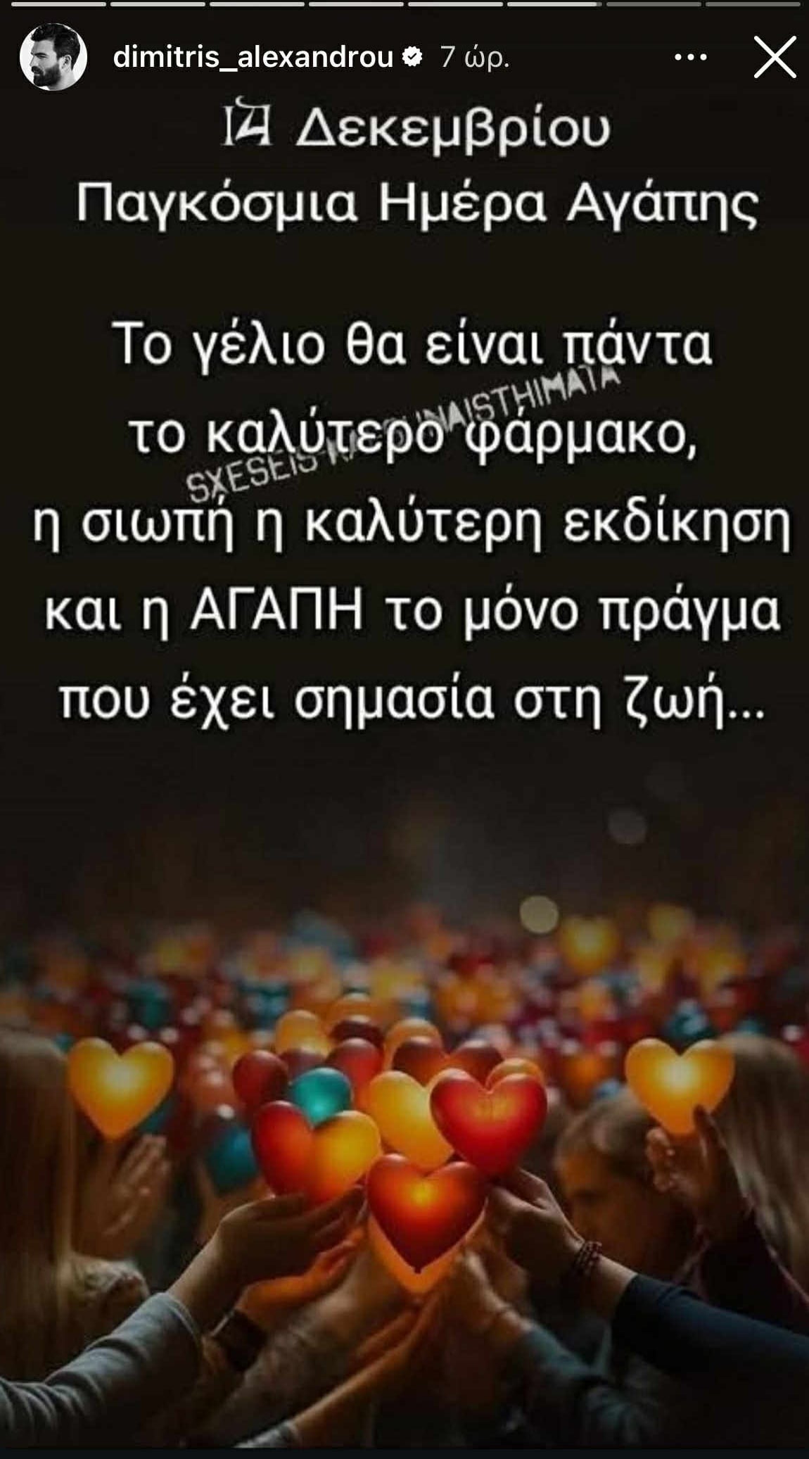 Σε μια ανάρτηση όλο νόημα προχώρησε σήμερα 14 Δεκεμβρίου ο Δημήτρης Αλεξάνδρου με αφορμή την Παγκόσμια Ημέρα Αγάπης.