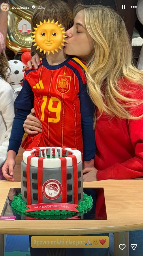 Η Δούκισσα Νομικού και ο Δημήτρης Θεοδωρίδης διοργάνωσαν ένα εντυπωσιακό πάρτι για τον μικρό Σάββα με τούρτα εμπνευσμένη από την ομάδα του, τον Ολυμπιακό και την επιγραφή «Χρόνια πολλά Σάββα».