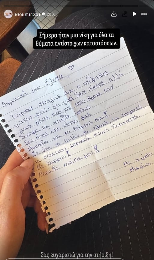 «Σήμερα ήταν μια νίκη για όλα τα θύματα αντίστοιχων καταστάσεων. Σας ευχαριστώ για τη στήριξη» έγραψε η Έλενα Κρεμλίδου.