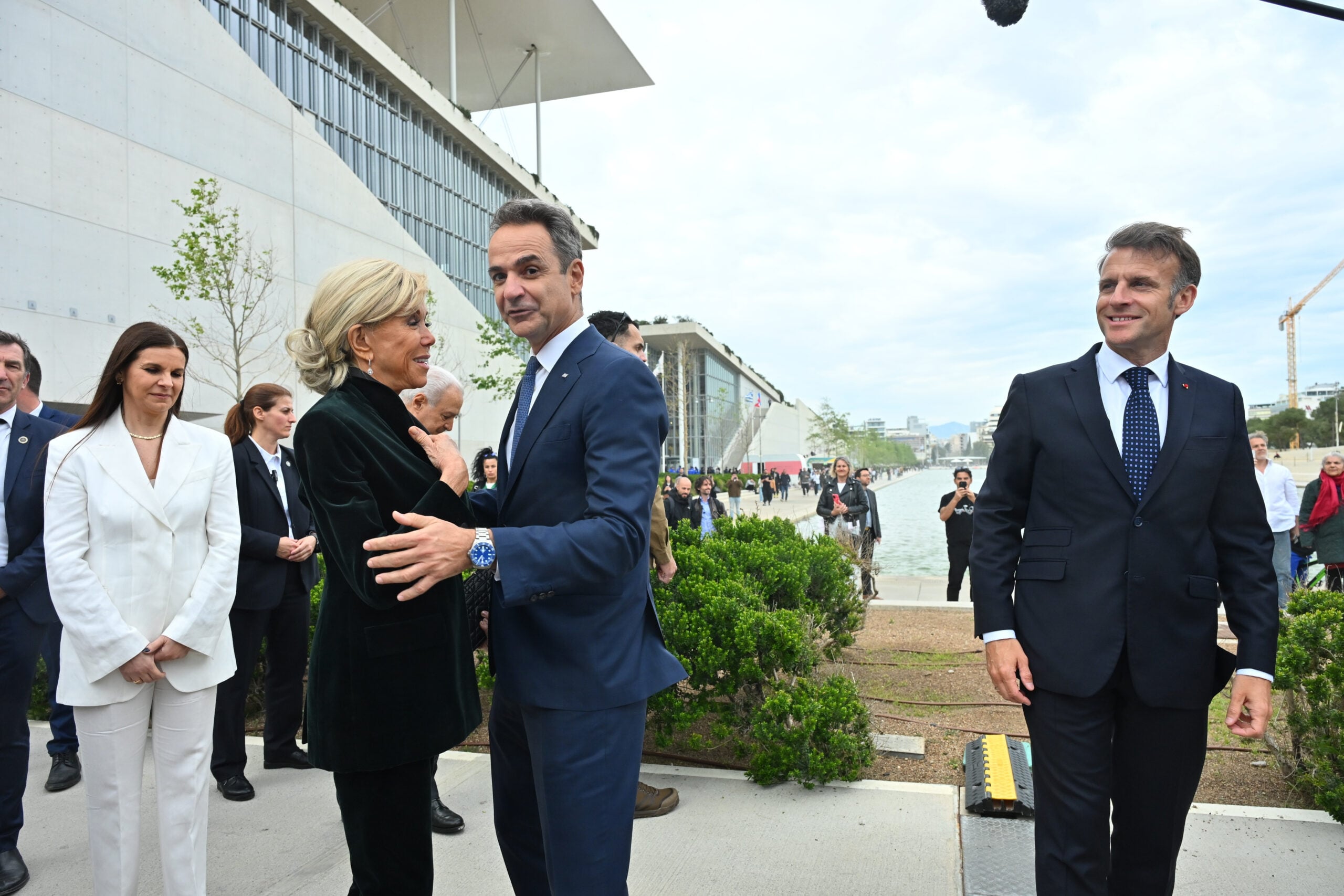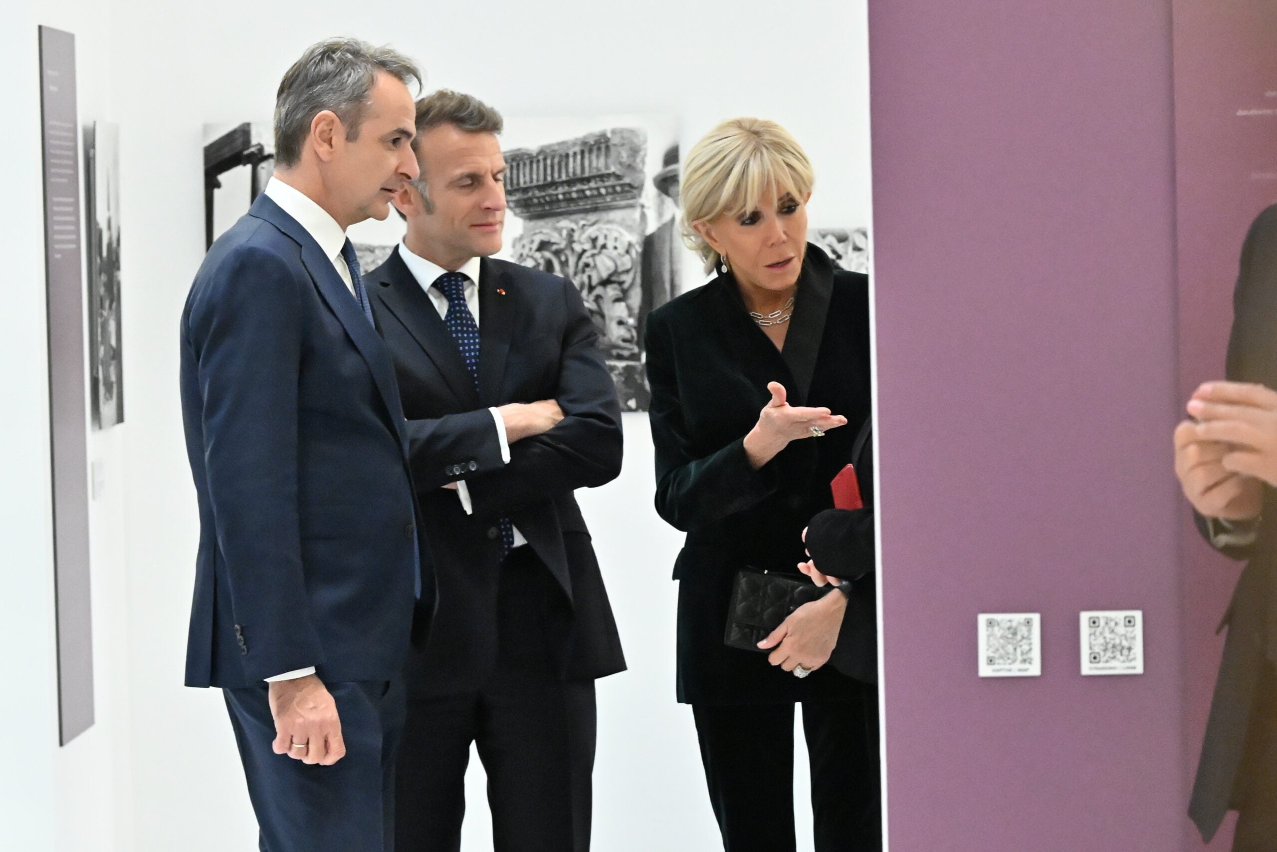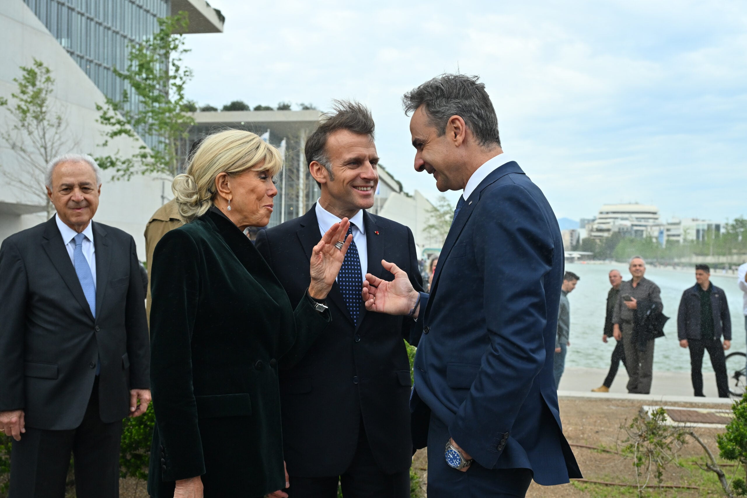 Με φόντο την ανοιξιάτικη Αθήνα, ο Γάλλος πρόεδρος και η Μπριζίτ κινήθηκαν χαλαρά στους χώρους του ΚΠΙΣΝ, δίπλα στον Κυριάκο Μητσοτάκη δείχνοντας να απολαμβάνουν τη θέα προς τη αλλά και την ιδιαίτερη αρχιτεκτονική του συγκροτήματος.