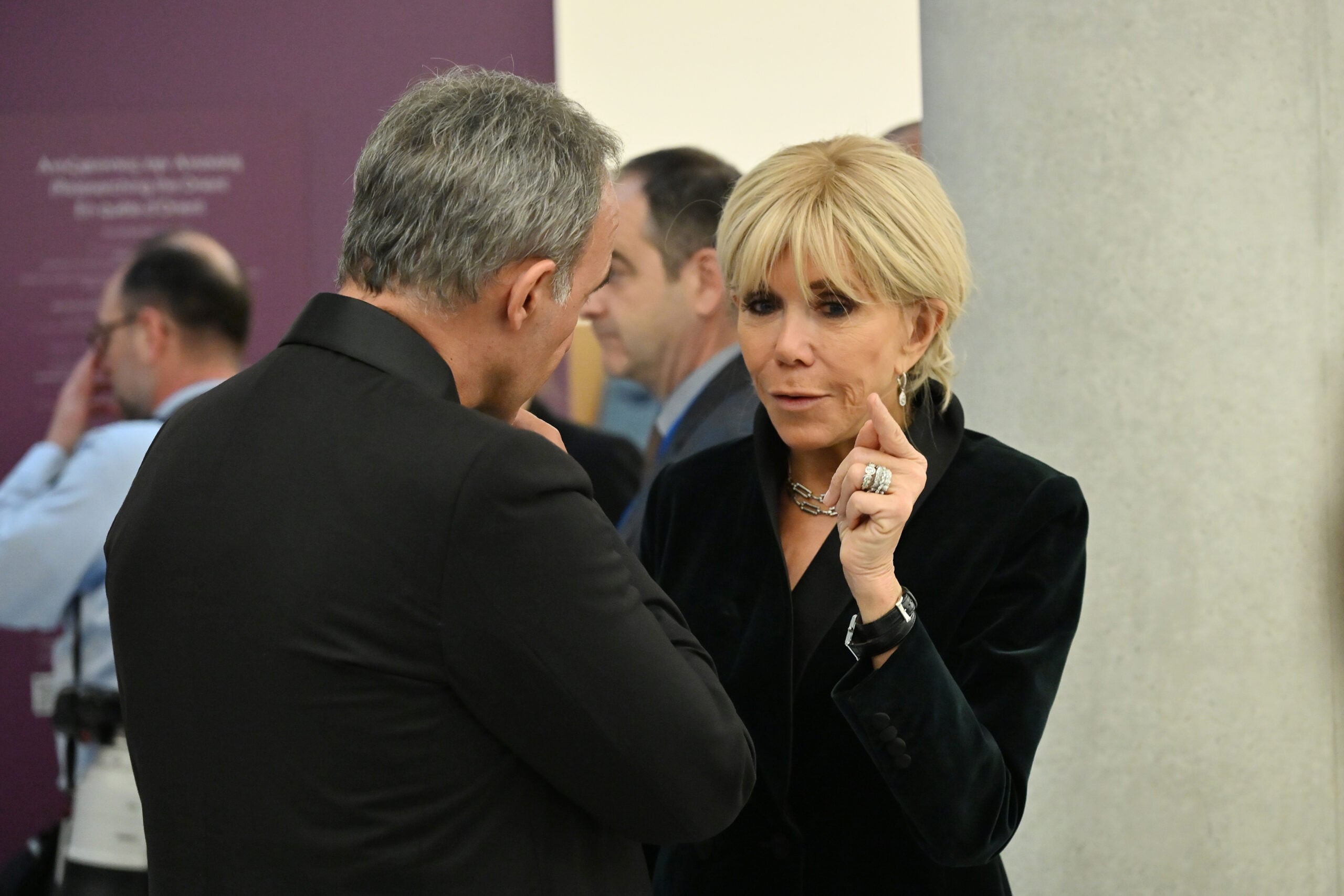 Η παρουσία τους δεν πέρασε απαρατήρητη από τους επισκέπτες, που έσπευσαν να απαθανατίσουν στιγμές από την επίσκεψη, ενώ το κλίμα παρέμεινε φιλικό και χαλαρό, μακριά από την αυστηρότητα των επίσημων συναντήσεων των προηγούμενων ημερών. Η Μπριζίτ Μακρόν για άλλη μια φορά, ξεχώρισε με την κομψή εμφάνισή της, επιλέγοντας μαύρο κοστούμι σε κλασική γραμμή. Το παρών έδωσε και ο Νίκος Αλιάγας.