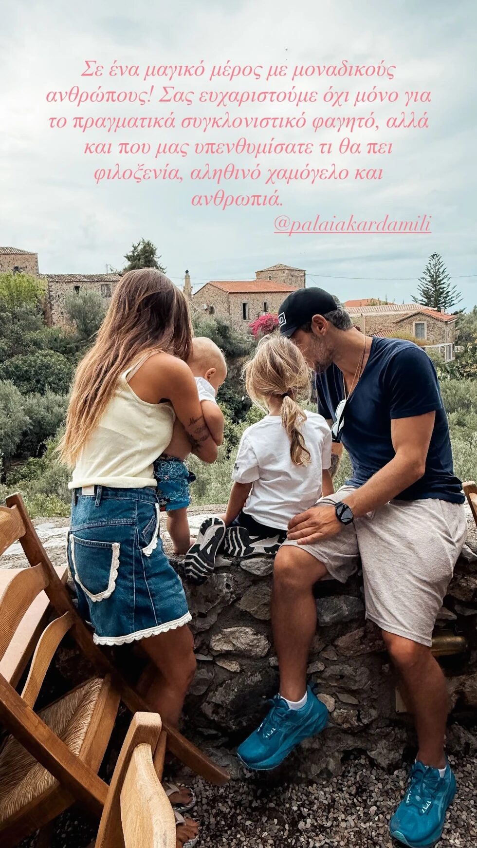«Σε ένα μαγικό μέρος με μοναδικούς ανθρώπους! Σας ευχαριστούμε όχι μόνο για το πραγματικά συγκλονιστικό φαγητό, αλλά και που μας υπενθυμίσατε τι θα πει φιλοξενία, αληθινό χαμόγελο και ανθρωπιά», έγραψε η Εριέττα Κούρκουλου.