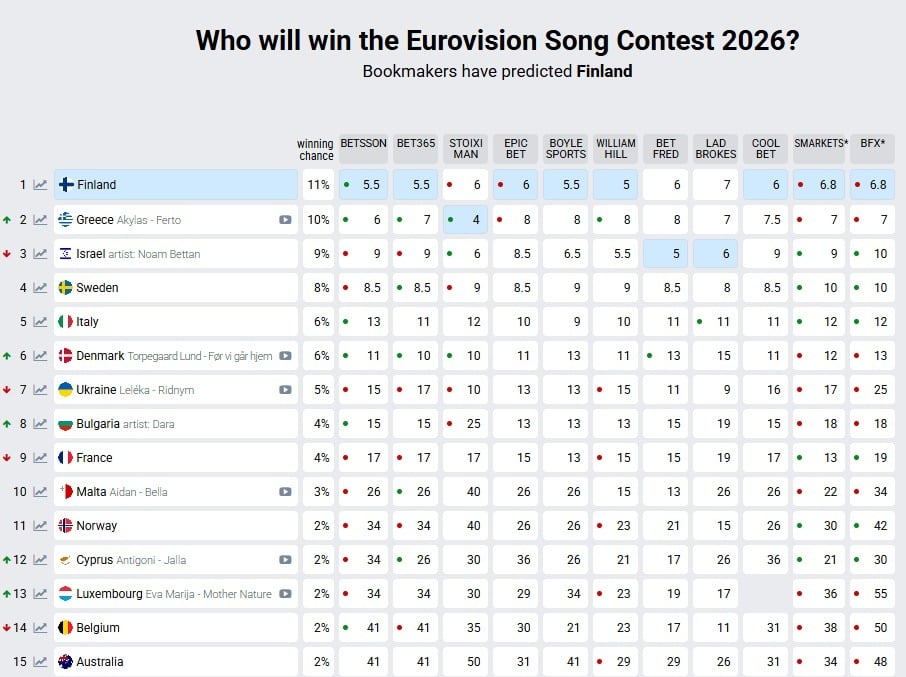 Ο 70ος διαγωνισμός της Eurovision θα διεξαχθεί στη Βιέννη τον προσεχή Μάιο και ήδη τα στοιχήματα έχουν αρχίσει να παίρνουν «φωτιά», παρά το γεγονός ότι δεν έχουν κυκλοφορήσει όλα τα υποψήφια τραγούδια.