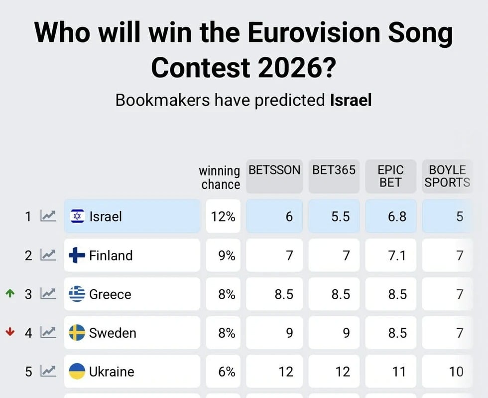 Τι και αν ακόμη δεν έχουμε επιλέξει το τραγούδι που θα μας εκπροσωπήσει, η Ελλάδα ήδη σημειώνει εντυπωσιακή άνοδο στα προγνωστικά για τη Eurovision 2026, μόλις λίγες ημέρες μετά την παρουσίαση των τραγουδιών που θα διαγωνιστούν στον Εθνικό Τελικό.
