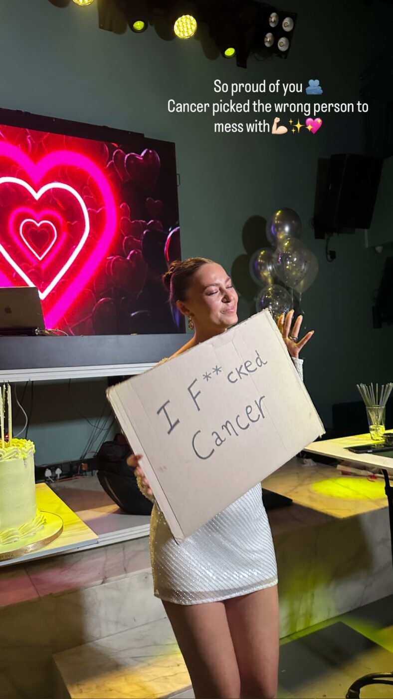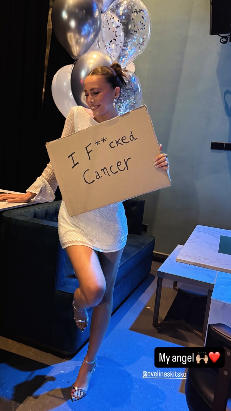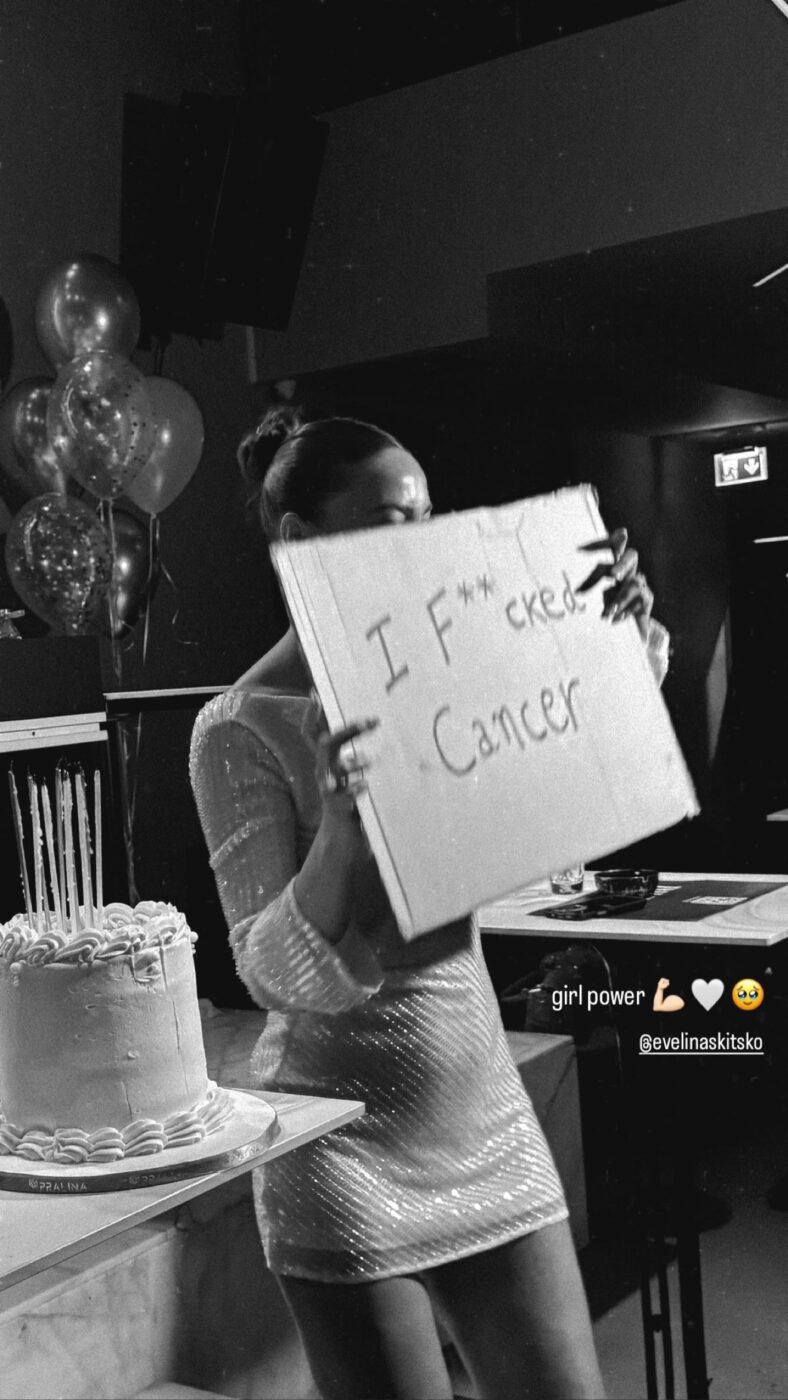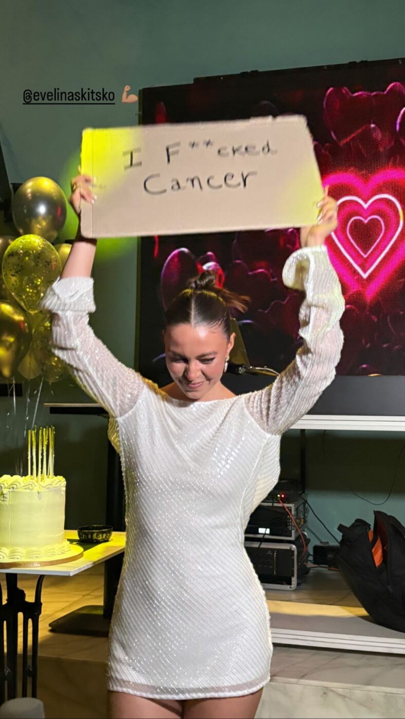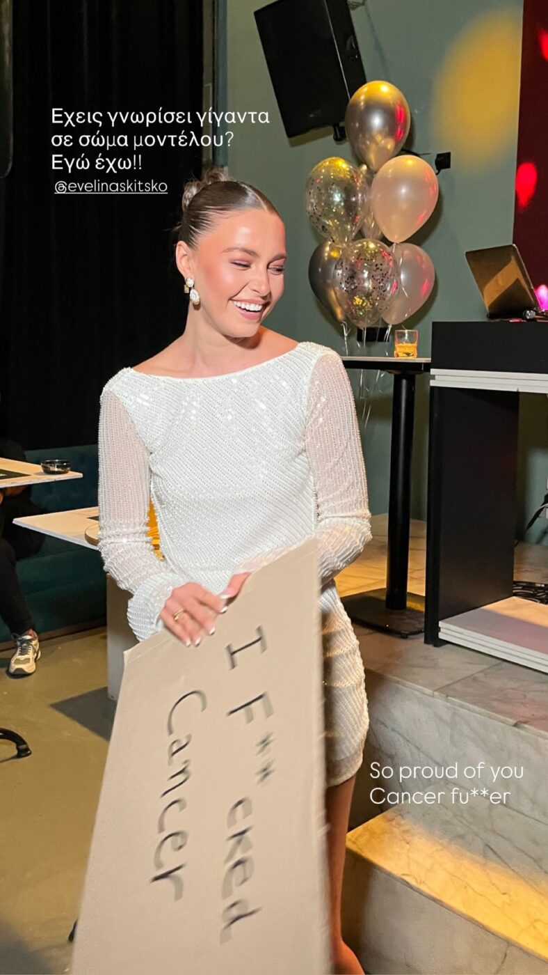 Ωστόσο, όλα αυτά φαίνεται πως ανήκουν στο παρελθόν, καθώς όπως θα δεις στις φωτογραφίες που ανέβασε η Εβελίνα Σκίτσκο, η ίδια γιόρτασε κάτι σαν… δεύτερα γενέθλια! Το πανέμορφο μοντέλο από την Κύπρο πόζαρε με μια χαρτονένια πινακίδα που έγραφε «Γά…σα τον καρκίνο!».