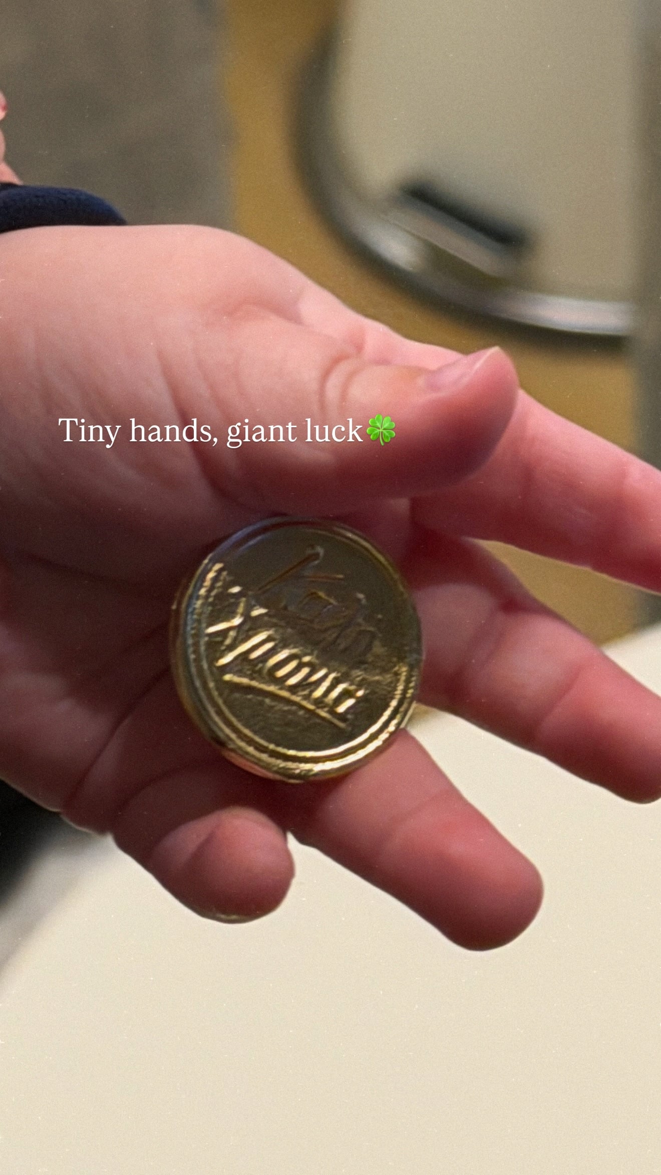 Το αγαπημένο ζευγάρι μοιράστηκε τη χαρά της στιγμής, δημοσιεύοντας μια φωτογραφίες στην οποία ο μικρός τους κρατάει στο χέρι του το φλουρί.