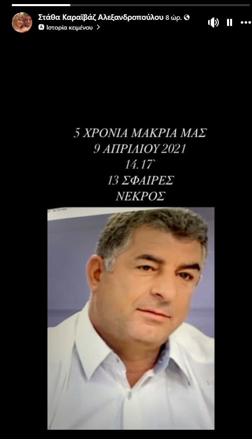 Σε ανάρτησή της στο facebook, γράφει: «5 χρόνια μακριά μας… 9 Απριλίου 2021… 14.17… 13 σφαίρες… νεκρός…».
