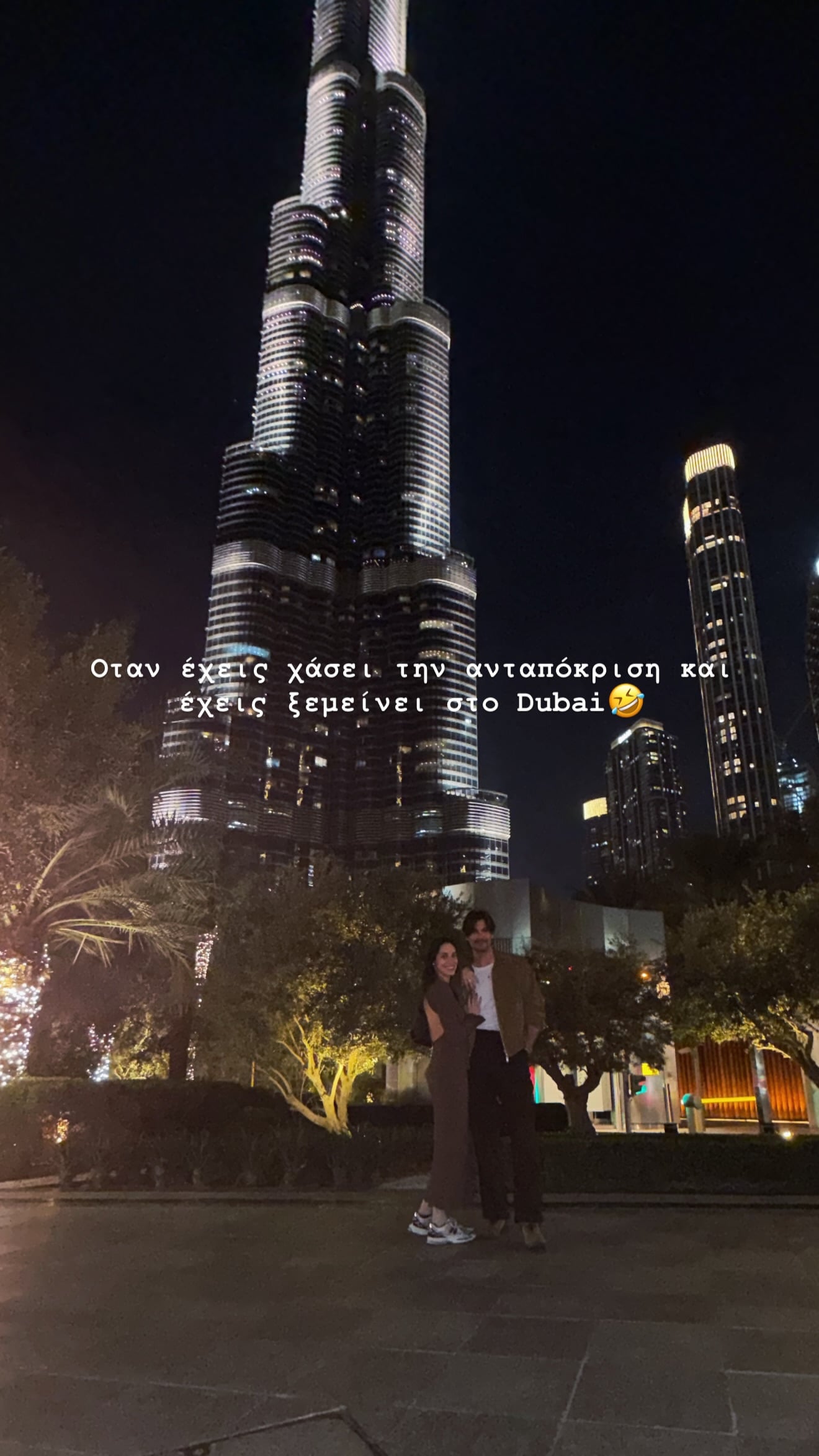 Τη δική της ανάρτηση έκανε και η Ραφαέλα Ψαρρού, η οποία ανήρτησε μια φωτογραφία με τον Γιώργο Καράβα, στην οποία τους βλέπουμε να ποζάρουν μπροστά από το Burj Khalifa.
