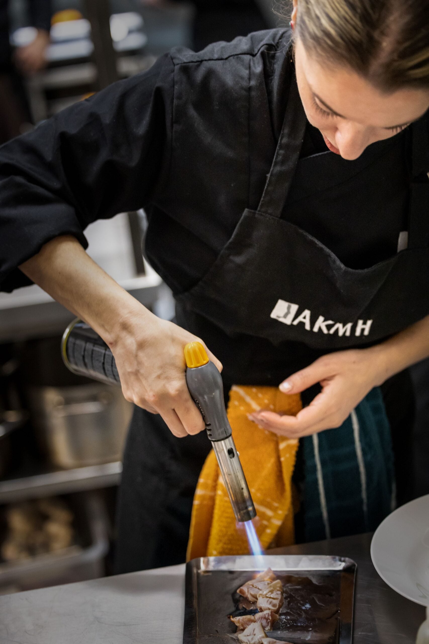 Η προετοιμασία δεν ήταν εύκολη. Για μια ολόκληρη εβδομάδα, το ανανεωμένο εκπαιδευτικό εστιατόριο της Ανώτερης Σχολής ΑΚΜΗ μετατράπηκε σε ένα κανονικό fine dining περιβάλλον. Εκεί, οι αυριανοί chefs και F&B managers εργάστηκαν εντατικά, σχεδιάζοντας και υλοποιώντας ένα υψηλών προδιαγραφών μενού, αποκτώντας πολύτιμη εμπειρία σε κάθε στάδιο της παραγωγής.