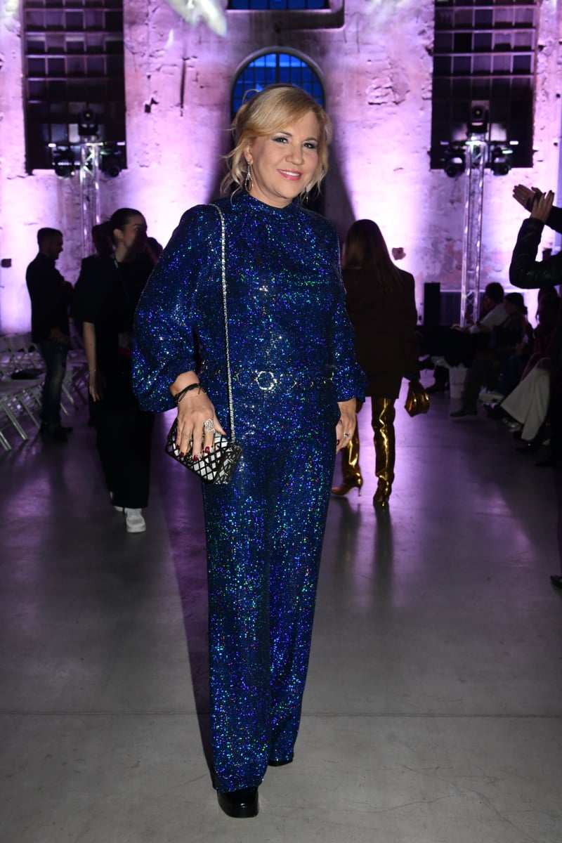 Στο catwalk, η παρουσιάστρια μαγνήτισε τα βλέμματα φορώντας ένα μίνι αστραφτερό φόρεμα, που τόνιζε τα καλλίγραμμα πόδια της και την άψογη τη σιλουέτα της.