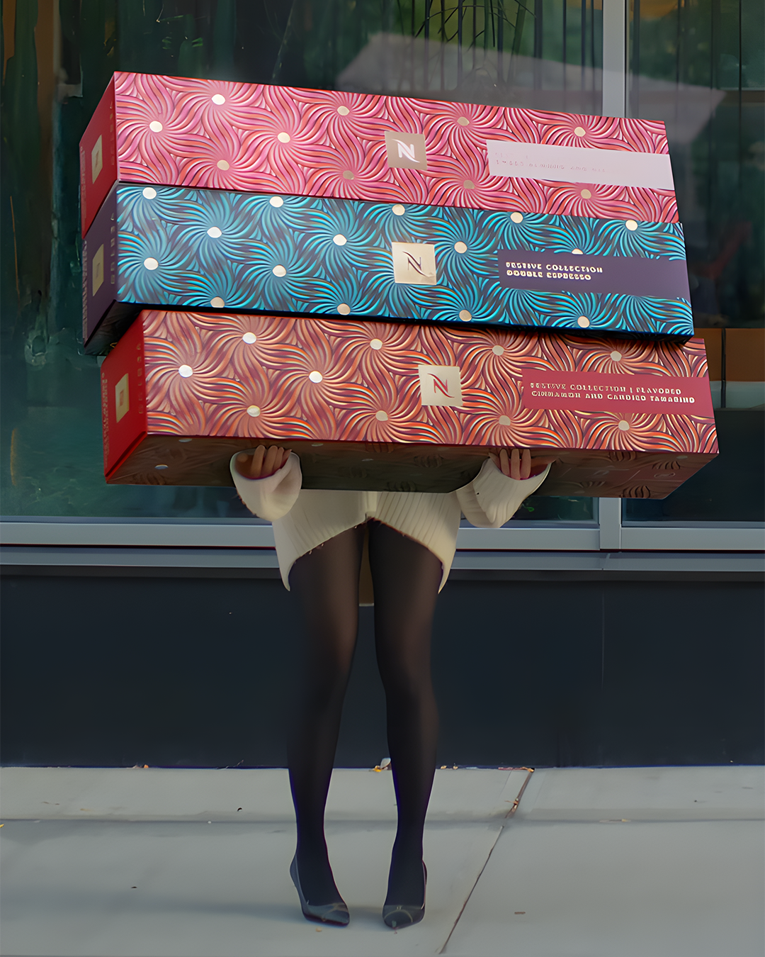 Οι κάψουλες nespresso είναι ένα μικρό δώρο από μόνες τους. Είτε για εκείνον που έχει αγαπημένη καθημερινή ρουτίνα, είτε για τον φίλο που θέλει να εξερευνήσει νέες γεύσεις. Η φετινή festive συλλογή ενθουσίασε και τις δύο μας, ειδικά χάρη στις γιορτινές νότες και τις μοναδικές συσκευασίες που μοιάζουν με μικρά γιορτινά «κοσμήματα». Από ό,τι έμαθα από τους πολύ εξυπηρετικούς υπαλλήλους, το μοτίβο των festive packaging είναι εμπνευσμένο από το λουλούδι του καφέ.