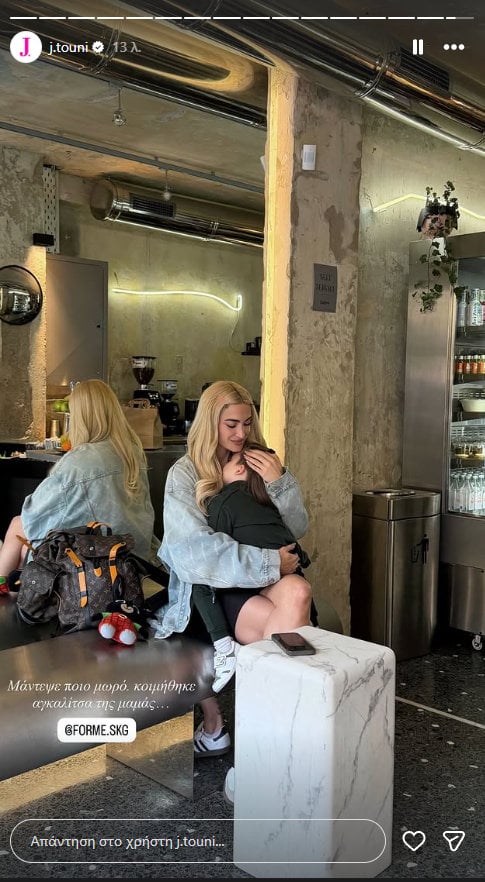 Η Ιωάννα Τούνη σήμερα Κυριακή 26 Απριλίου μοιράστηκε στα social media τη νέα τρυφερή φωτογραφία με τον γιο της να κοιμάται στην αγκαλιά της, κατά την έξοδό τους στο κέντρο της Θεσσαλονίκης.