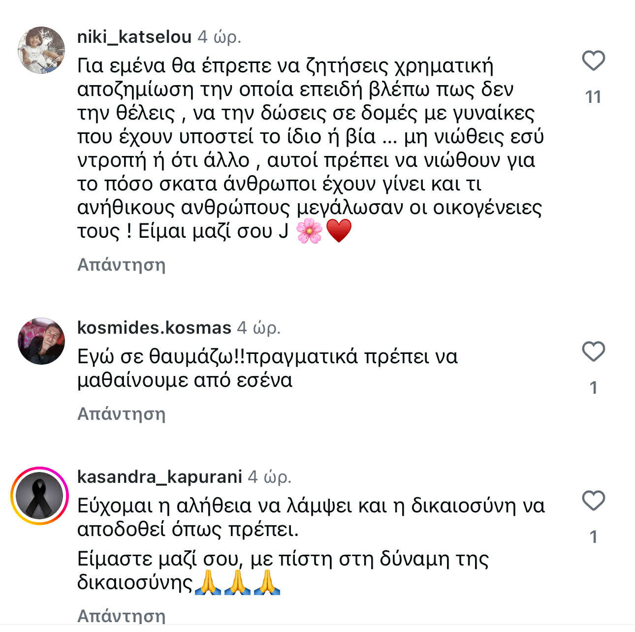 - Πολλοί χρήστες του Instagram και επώνυμοι εξέφρασαν τη στήριξή τους, ζητώντας δικαίωση για την υπόθεση.