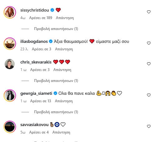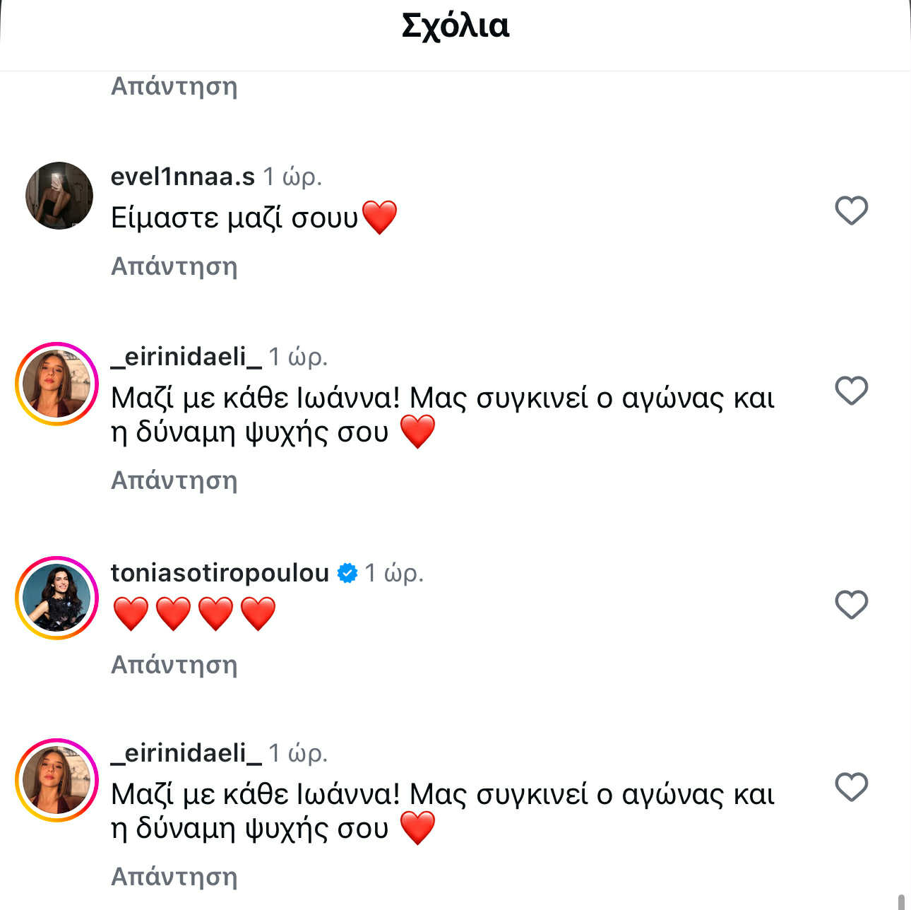 Δες παρακάτω μερικά από τα σχόλια κάτω από την ανάρτησή της:
