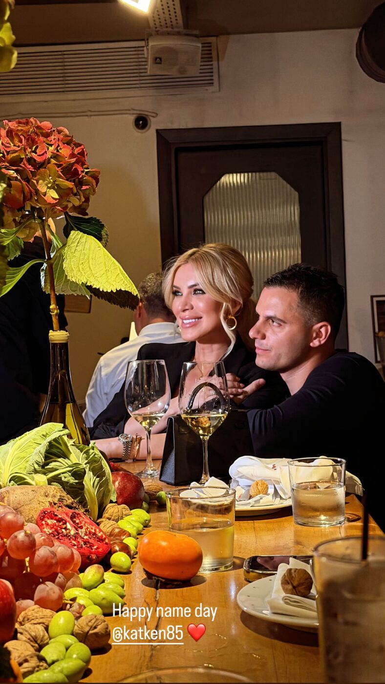 Η Κατερίνα Καινούργιου γιόρτασε την ονομαστική της εορτή στις 25 Νοεμβρίου, λαμβάνοντας ευχές από φίλους και συγγενείς, ενώ πέρασε το βράδυ σε δείπνο στο εστιατόριο του συντρόφου της, Παναγιώτη Κουτσουμπή. Ο Παναγιώτης μοιράστηκε μια τρυφερή φωτογραφία τους στο Instagram, ευχόμενος «Χαρούμενη γιορτή!» στην εγκυμονούσα Κατερίνα, η οποία βρίσκεται στον πέμπτο μήνα της εγκυμοσύνης της.