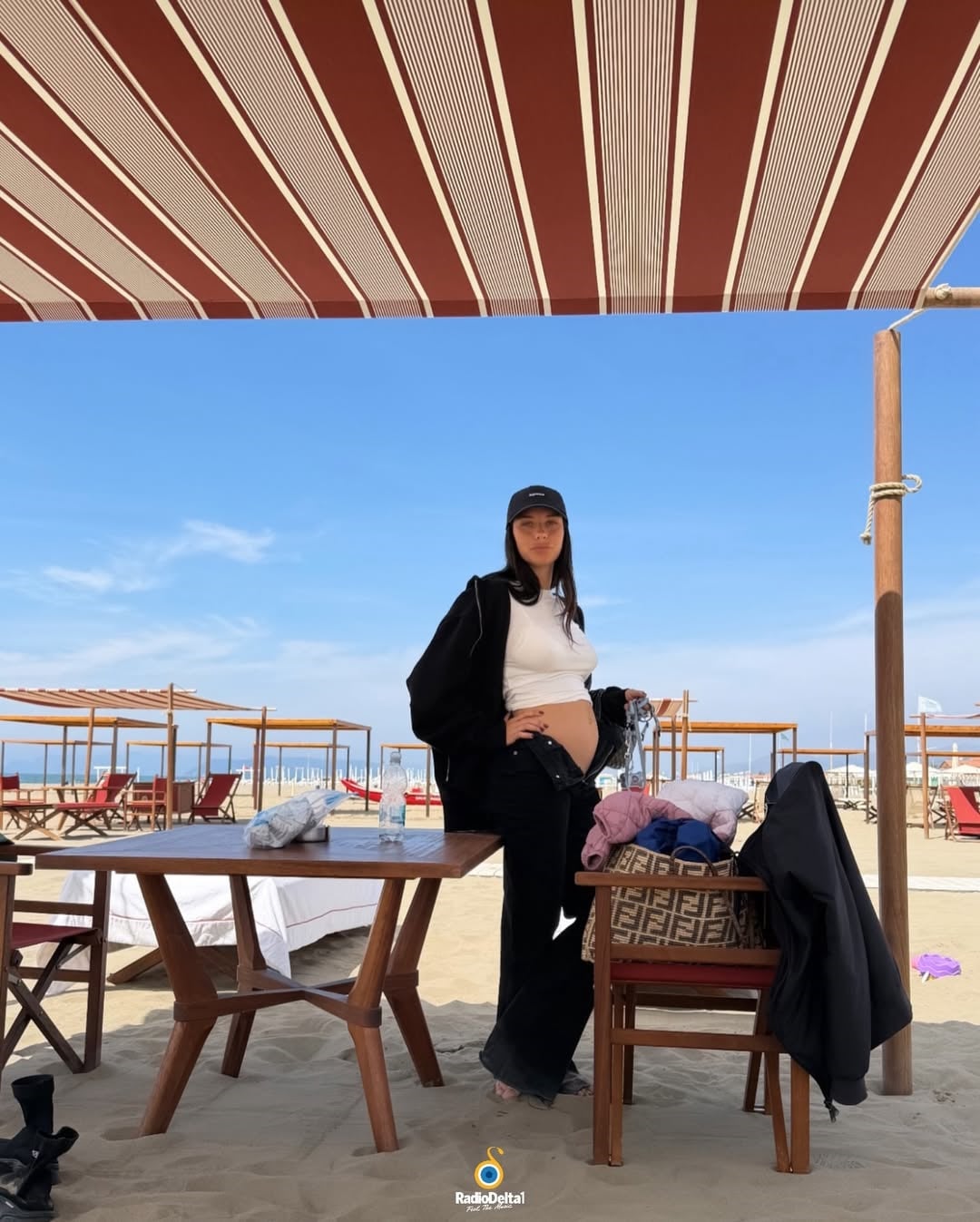 Λίγο αργότερα, ανάρτησε και φωτογραφία όπου η Giulia Honegger ποζάρει στην παραλία, φορώντας κοντό μπλουζάκι που αφήνει ακάλυπτη την κοιλιά της, επιβεβαιώνοντας τα σενάρια περί εγκυμοσύνης.