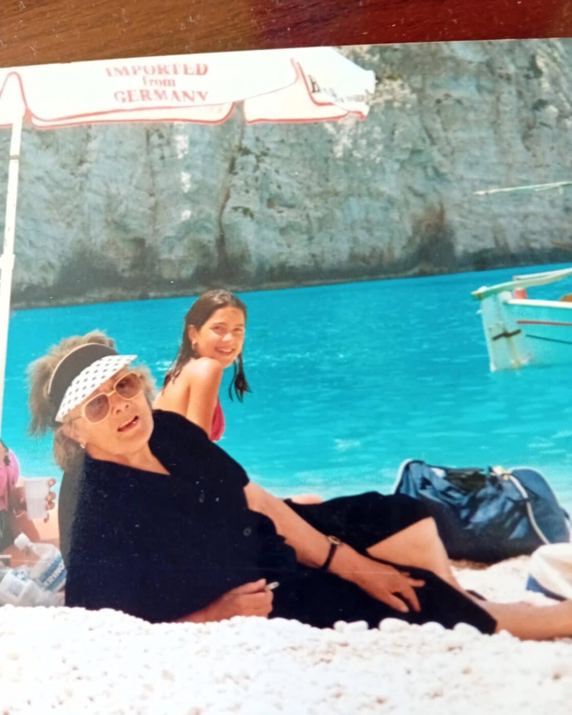 «Χαρίκλεια Ρένεση μικρή και μεγάλη, λιάζονται στο ναυάγιο Ζακύνθου, κάπου στα τέλη του ‘80..Αλάνια από κούνια», έγραψε η Κλέλια Ρένεση στην λεζάντα της φωτογραφίας της.