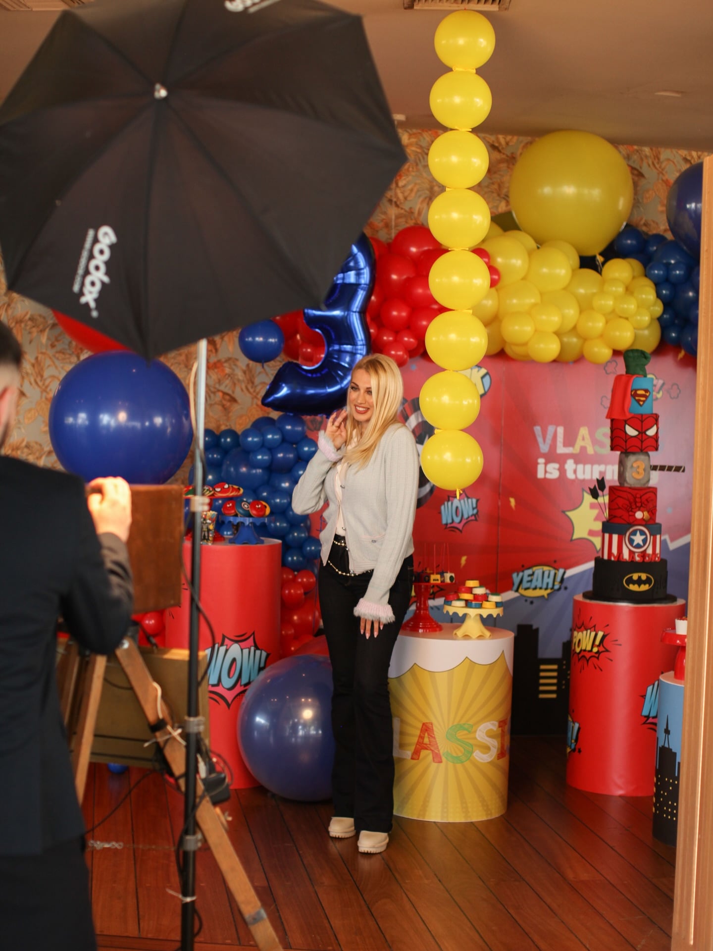 Στις αδημοσίευτες φωτογραφίες, ο μικρός Βλάσσης εμφανίζεται φορώντας κοστούμι, ενώ το πάρτι είναι διακοσμημένο με τους αγαπημένους του σούπερ ήρωες