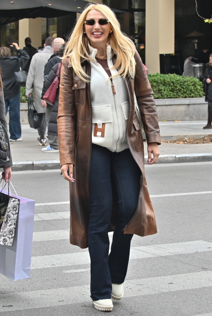 Οι δυο πανέμορφες αδελφές απόλαυσαν τη βόλτα και τις αγορές τους, με την παρουσιάστρια να χαμογελάει στους φωτογράφους.