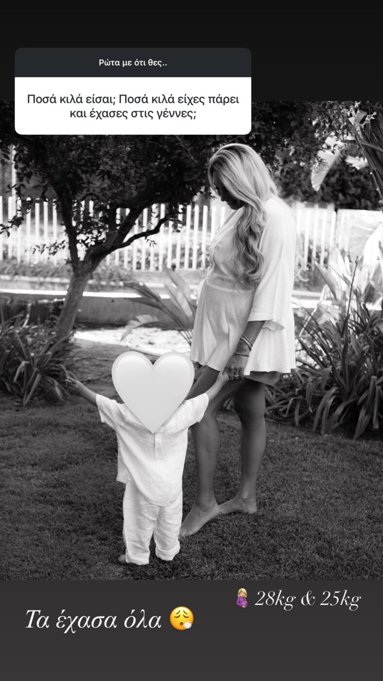 Ακόμη, η παρουσιάστρια αποκάλυψε ότι κατάφερε με πειθαρχεία, συνέπεια και αρκετή γυμναστική να χάσει όλα τα κιλά που πήρε στις 2 back to back εγκυμοσύνες της.