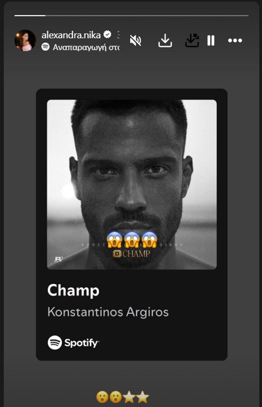 Η Αλεξάνδρα Νίκα μοιράστηκε το τραγούδι στα Instagram Stories της μαζί με emojiis, που έδειχναν τον ενθουσιασμό της.
