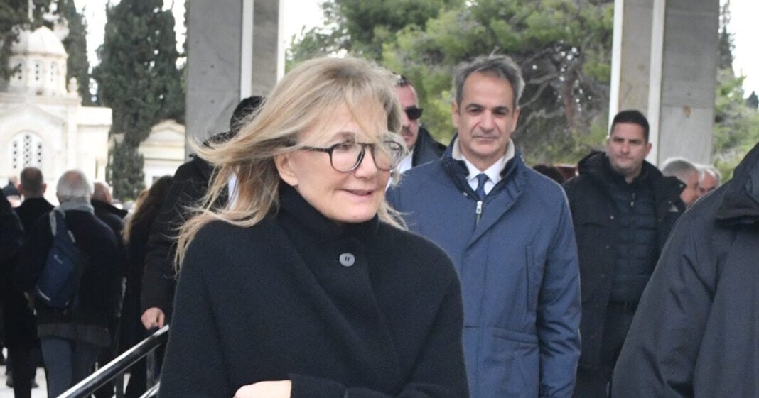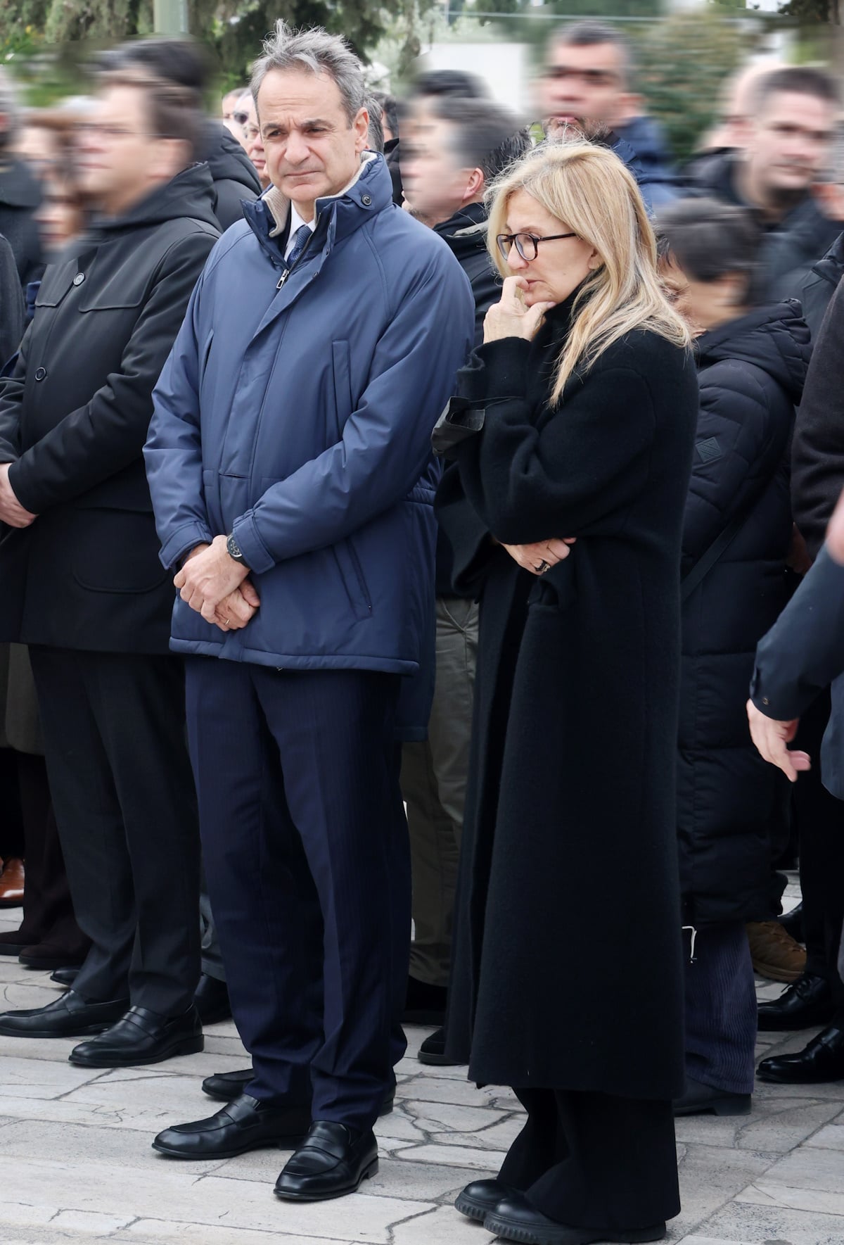 Κυριάκος Μητσοτάκης και Μαρέβα Γκραμπόφσκι αποχαιρετούν τον Νίκο Στασινόπουλο στην κηδεία του
