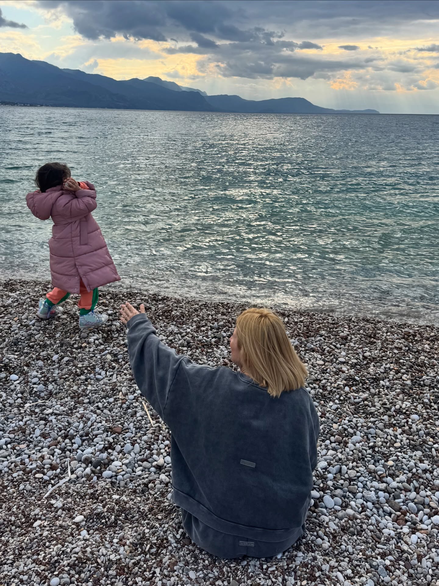 Στο τέλος της ημέρες, η Μαρία Ηλιάκη, γεμάτη από χαρά, θέλησε να μοιραστεί με τους διαδικτυακούς της φίλους φωτογραφίες που τράβηξε με τις μικρές, δίπλα στο κύμα.