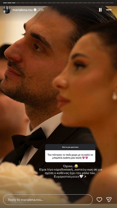 Στη συνέχεια, η Μαριαλένα Ρουμελιώτη απάντησε σε περισσότερες ερωτήσεις για τον γάμο της με τον Σάκη Κατσούλη για την ώρα της τελετής, αλλά και την είσοδο στο γαμήλιο πάρτι.