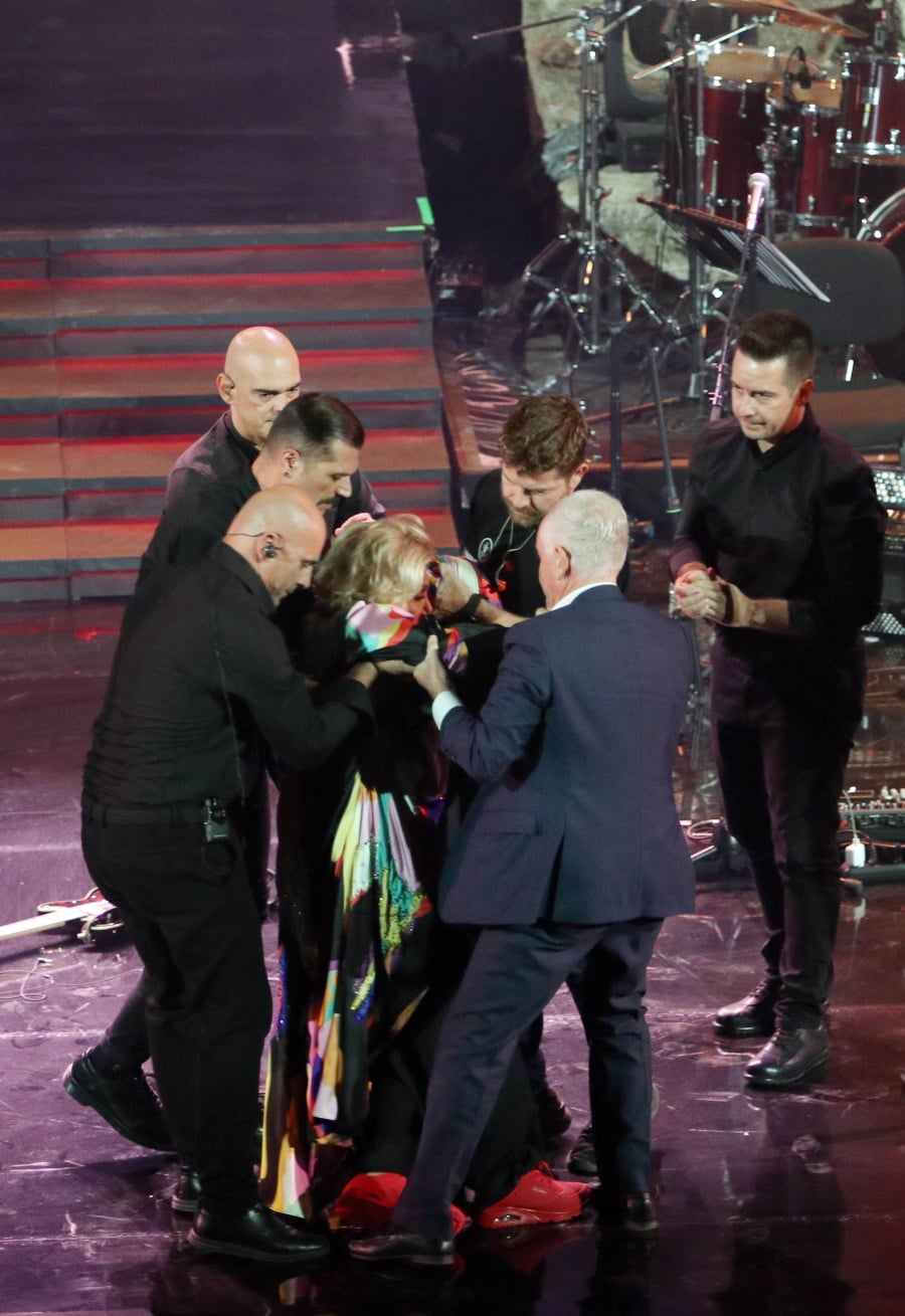 Η Μαρινέλλα πρόλαβε να πει μόλις δύο τραγούδια και κατά τη διάρκεια του τρίτου η 87χρονη ερμηνεύτρια λιποθύμησε στη σκηνή με τους μουσικούς της να σπεύδουν να την βοηθήσουν.