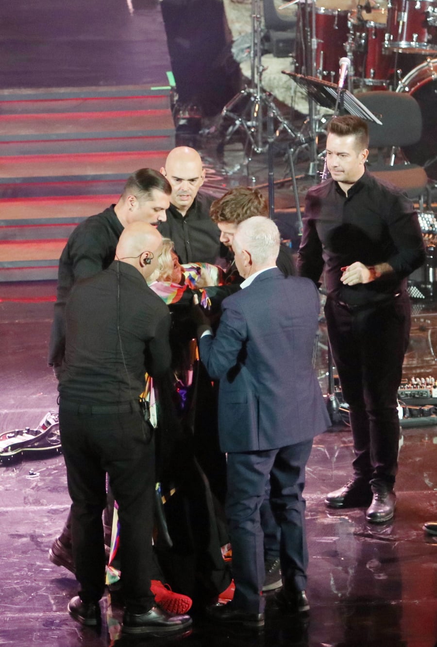 Αμέσως της δόθηκαν οι πρώτες βοήθειες, μεταφέρθηκε στα καμαρίνια όπου ανέκτησε τις αισθήσεις της και σχεδόν μια ώρα μετά μεταφέρθηκε στο νοσοκομείο όπου διαγνώσθηκε με σοβαρό αγγειακό εγκεφαλικό επεισόδιο (αιμορραγία). Την ίδια ώρα, οι θεατές ενημερώνονταν από την παραγωγή ότι η συναυλία αναβάλλεται οριστικά.