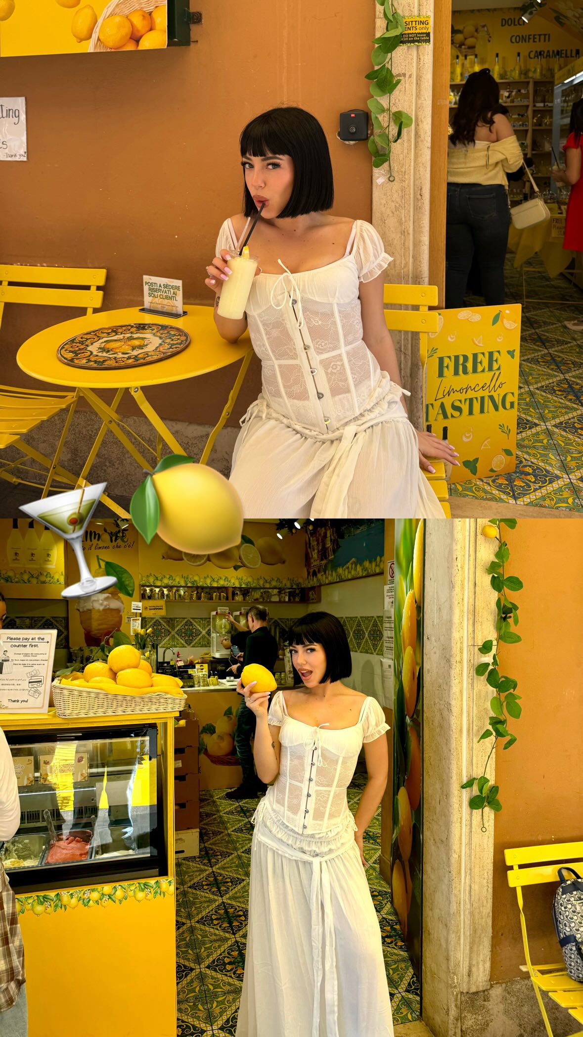 Η Marseaux κοινοποίησε μια σειρά από στιγμιότυπα στα social media, με την ίδια να ποζάρει με ιταλικό αέρα. Φορώντας ένα λευκό μακρύ fashion forward φόρεμα και πίνοντας γρανίτα λεμόνι -όπως θα τιτλοφορείται και το νέο της τραγούδι-, φαίνεται ότι περνά τις πιο χαλαρές στιγμές της.