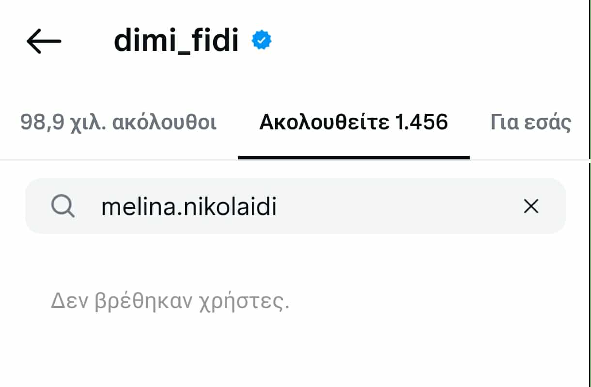 • Η Μελίνα Νικολαΐδη και ο Δημήτρης Φιντιρίκος επιβεβαίωσαν τον χωρισμό τους κάνοντας unfollow ο ένας τον άλλον στο Instagram.