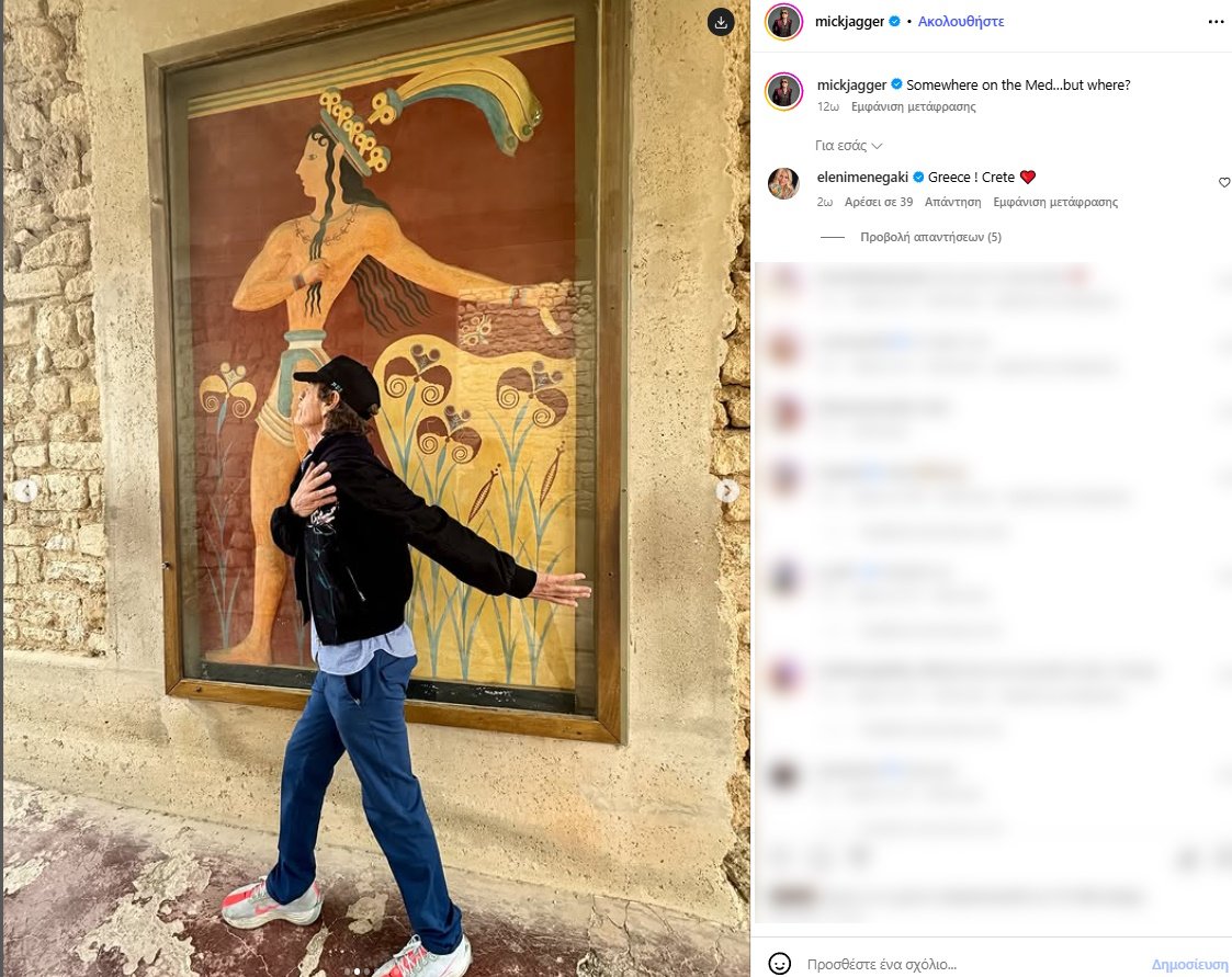 • Ο Μικ Τζάγκερ μοιράστηκε φωτογραφίες από την επίσκεψή του στην Κνωσσό, προκαλώντας το ενδιαφέρον των θαυμαστών του με χιουμοριστική λεζάντα.