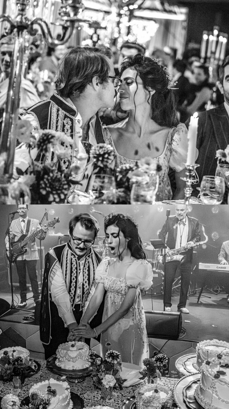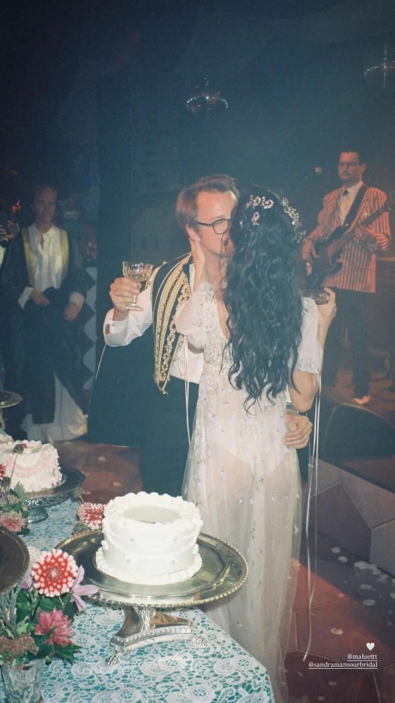 Η νύφη μοιράστηκε φωτογραφίες από τη μαγική τελετή στον λογαριασμό της στο Instagram, εκφράζοντας την ευγνωμοσύνη της για το καλλιτεχνικό νυφικό της, το οποίο περιέγραψε ως έργο τέχνης, ενώ ο γαμπρός θύμιζε εύζωνα.