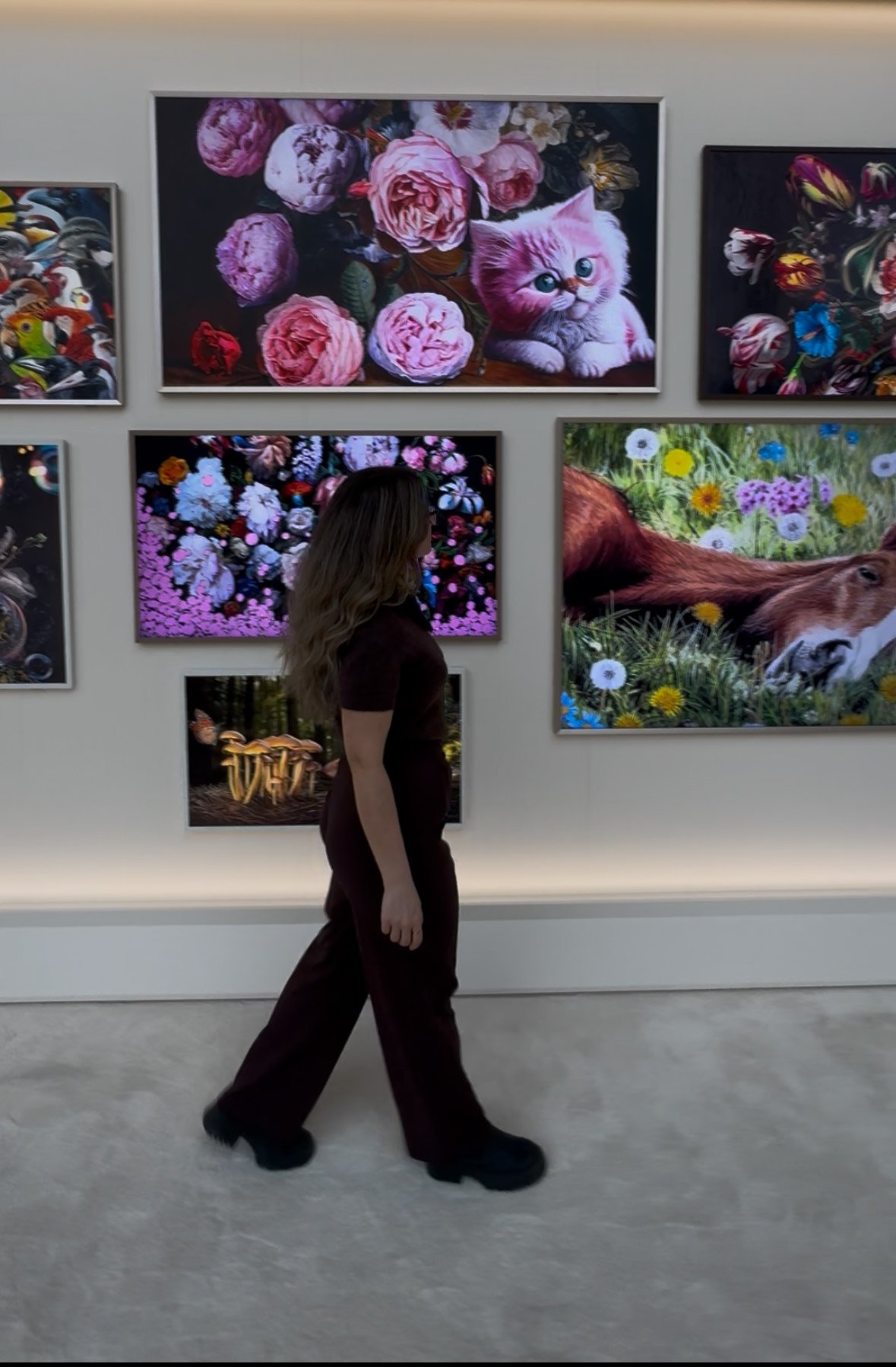 Η επίδειξη της συλλογής στο Grand Palais και στο περίπτερο της Samsung στην Art Basel Paris ήταν μια πραγματική εμπειρία για όλες τις αισθήσεις. Οι Art TVs, λεπτές και κομψές σαν πίνακες ζωγραφικής, ενσωματώθηκαν στον χώρο σαν ένα διακριτικό αλλά εντυπωσιακό στοιχείο design, επιτρέποντας στον θεατή να βιώσει τα έργα σε υπερ-υψηλή ανάλυση 4Κ, με την ίδια ζωντάνια, υφή και λεπτομέρεια όπως στην πραγματική γκαλερί. Το ματ φινίρισμα των οθονών, η πιστοποίηση Pantone Validated ArtfulColor και η προηγμένη τεχνολογία της Neo QLED έκαναν κάθε έργο να φαίνεται αληθινό, σχεδόν έτοιμο να αγγίξεις την υφή του.