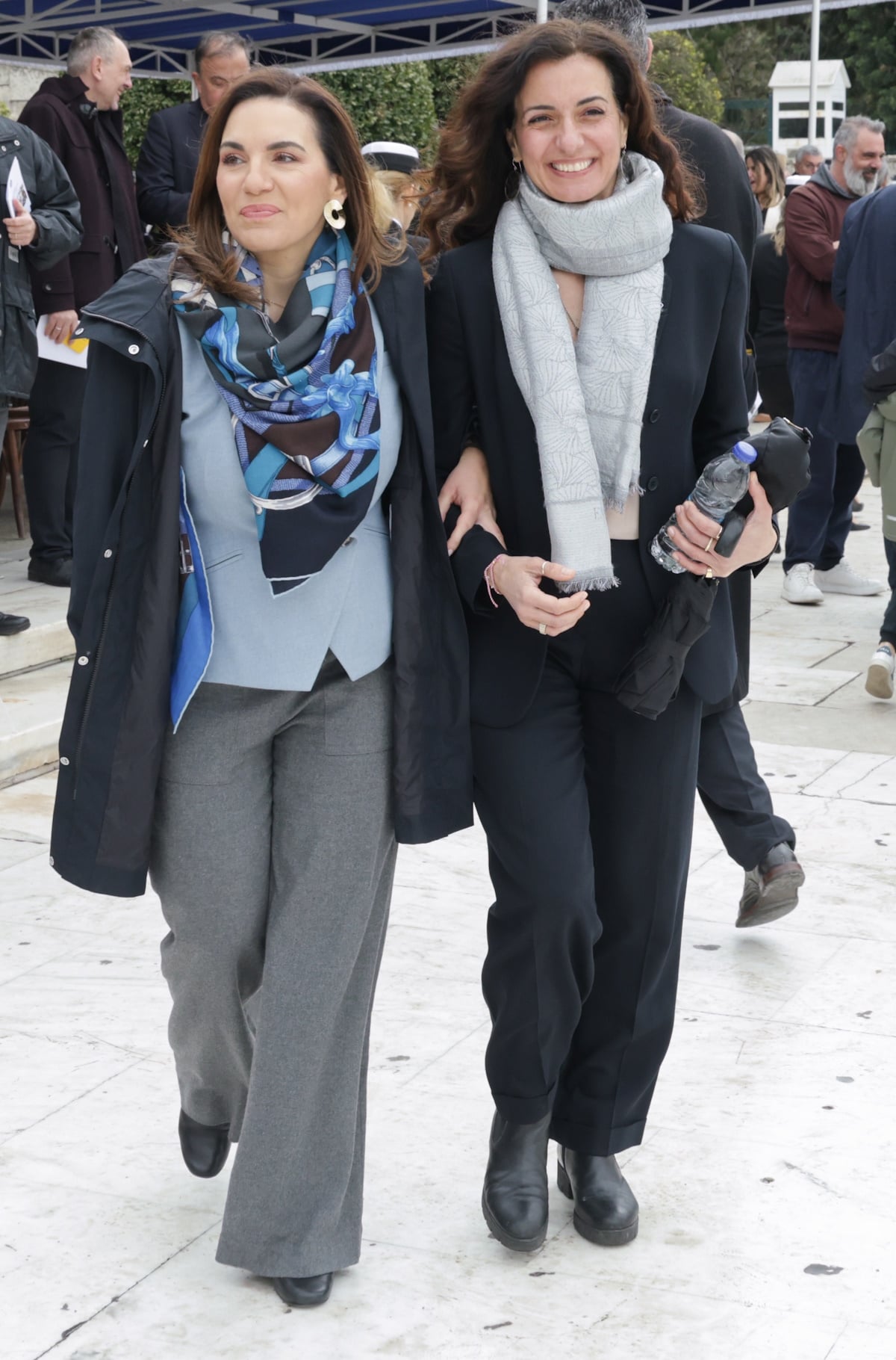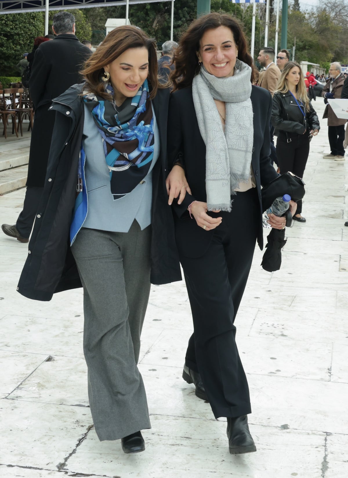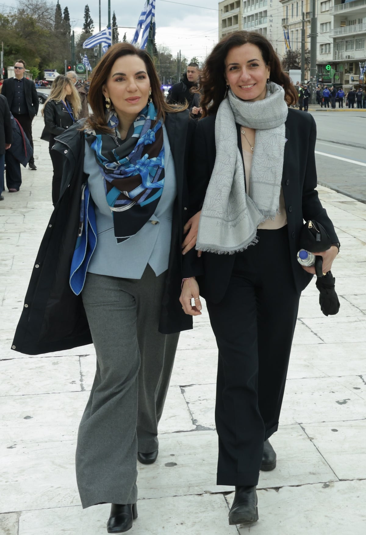 Όλγα Κεφαλογιάννη και Χριστίνα Κεφαλογιάννη απαθανατίστηκαν από τον φωτογραφικό φακό αγκαζέ στη μαθητική παρέλαση της 25ης Μαρτίου στο Σύνταγμα.