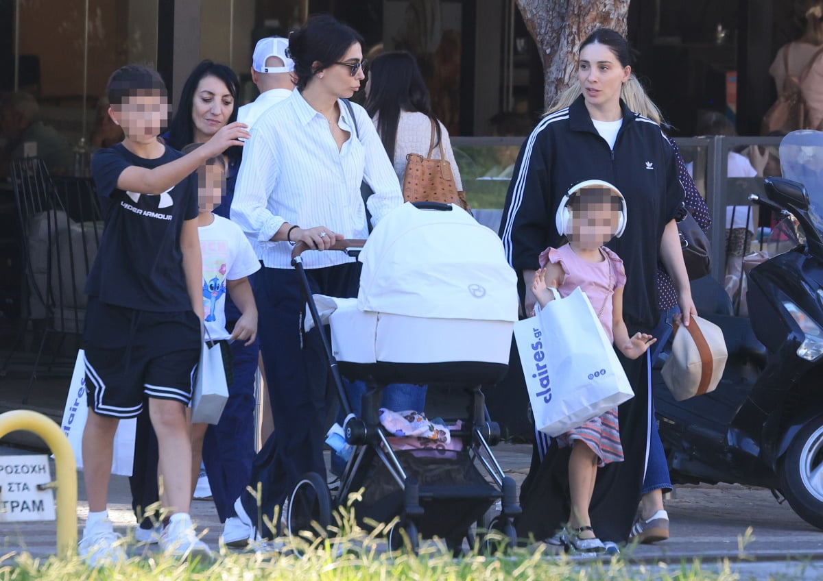 Δες παρακάτω φωτογραφίες από την έξοδο της Ολυμπίας και της Βαλέριας Χοψονίδου με τα παιδιά και τη μητέρα τους.