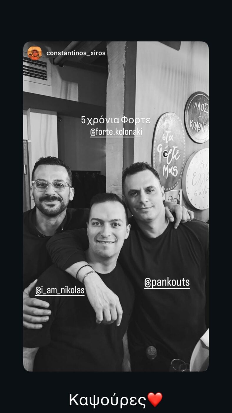 «Έλα ρε πατέρα Παναγιώτη», έγραψε στην πόζα που μοιράστηκε στο Instagram ο Κώστας Τσουρός και αναδημοσίευσε και ο σύντροφος της Κατερίνας Καινούργιου.