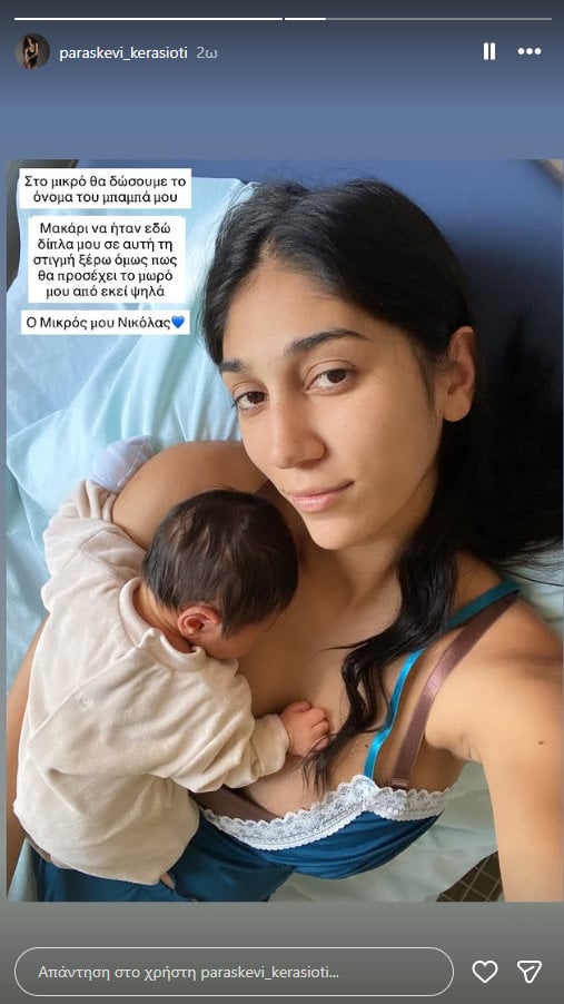 Το πρώτο της παιδί έφερε τον κόσμο η Παρασκευή Κερασιώτη στις 29 Οκτωβρίου.
