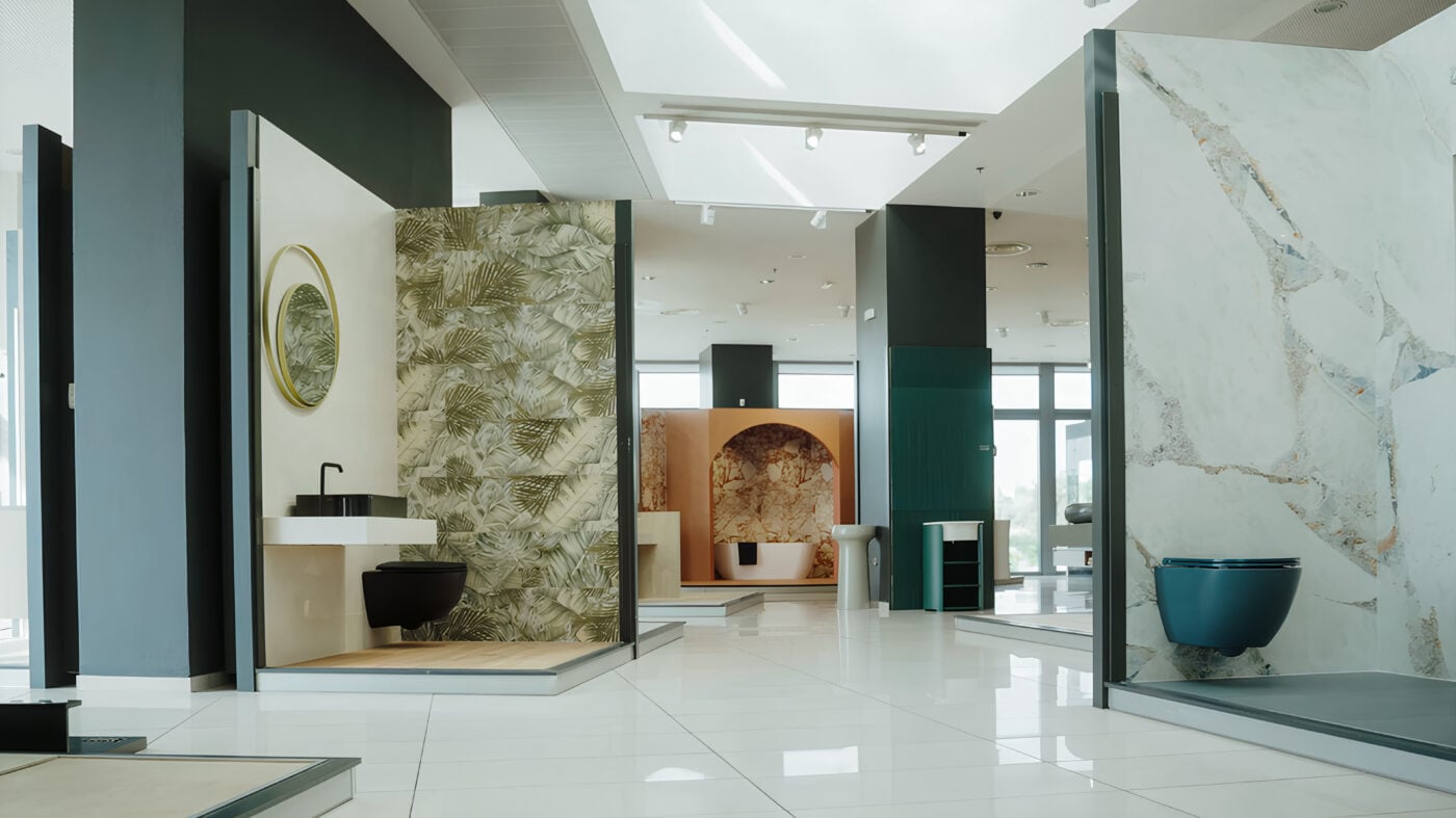 - Το showroom της εταιρίας Κυπριώτη στην Ανθούσα προσφέρει ρεαλιστικά σκηνικά με ποικιλία πλακιδίων και ειδών υγιεινής.