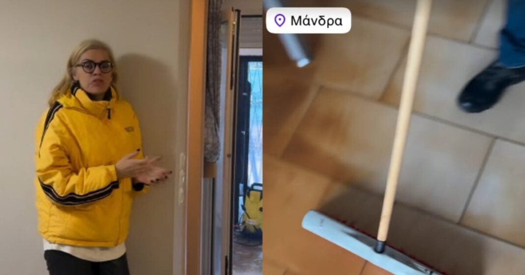 Η Σάσα Σταμάτη, σε βίντεό της στα social media, δείχνει τις εικόνες στα σπίτια των κατοίκων της Μάνδρας, μετά τις καταστροφές που προκάλεσε η κακοκαιρία Byron