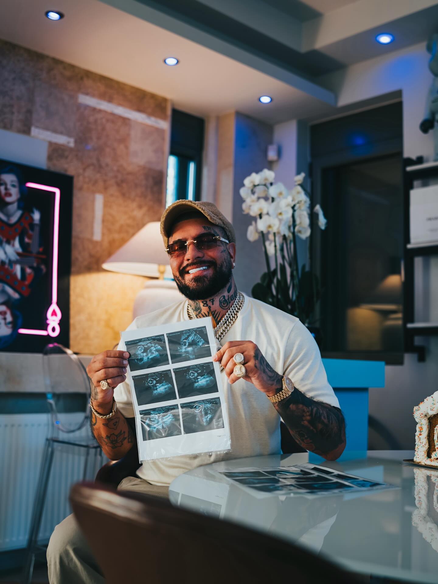 Πιο ευτυχισμένος από ποτέ, ο τράπερ ποζάρει στον φακό κρατώντας τον υπέρηχο του μωρού του και στη λεζάντα της ανάρτησής του έβαλε δύο μπιμπερό.