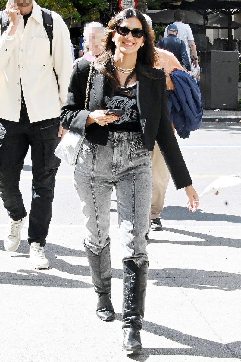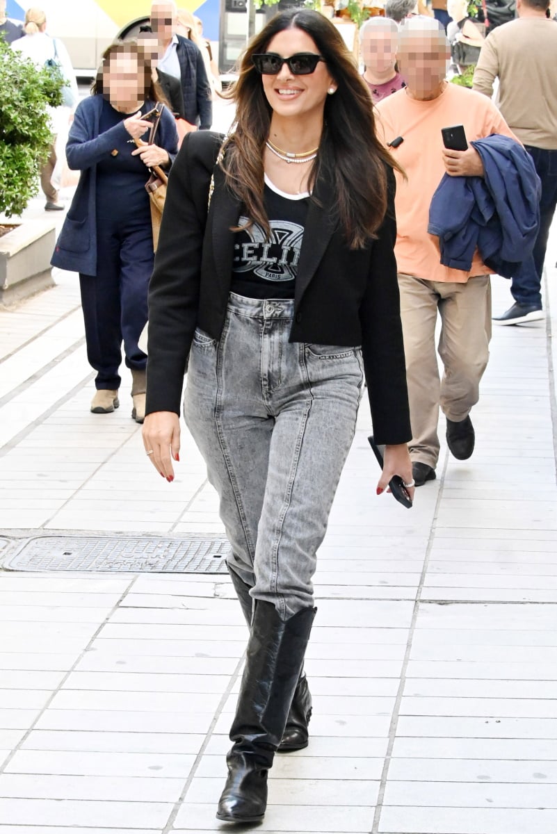 Απολαμβάνοντας τα ψώνια της με casual εμφάνιση, η Τσιμτσιλή δεν φάνηκε να ενοχλείται από τα φωτογραφικά φλας, χαρίζοντας ένα μεγάλο χαμόγελο στον φακό.